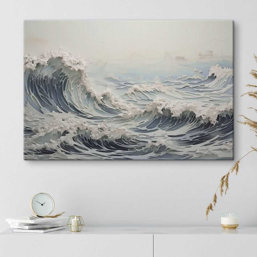 Imaginați-vă că stați într-o cameră confortabilă și admirați „Valuri mari în ocean” de peste drum. E ca și cum ați avea o bucată din ocean chiar acasă, fără nisip în pantofi! Opera de artă surprinde acele creste superbe și spumoase care se revarsă în cascadă, dând senzația că o briză ușoară ar putea să treacă prin ea. Perfectă pentru a visa cu ochii deschiși la vacanțe la plajă sau nopți confortabile acasă. Combinați-o cu o pătură moale și poate câteva lumânări cu aromă de plajă, și sunteți gata. S-ar putea să vă inspire să vă planificați următoarea escapadă la mare – sau cel puțin o ceașcă fierbinte de ceva liniștitor!