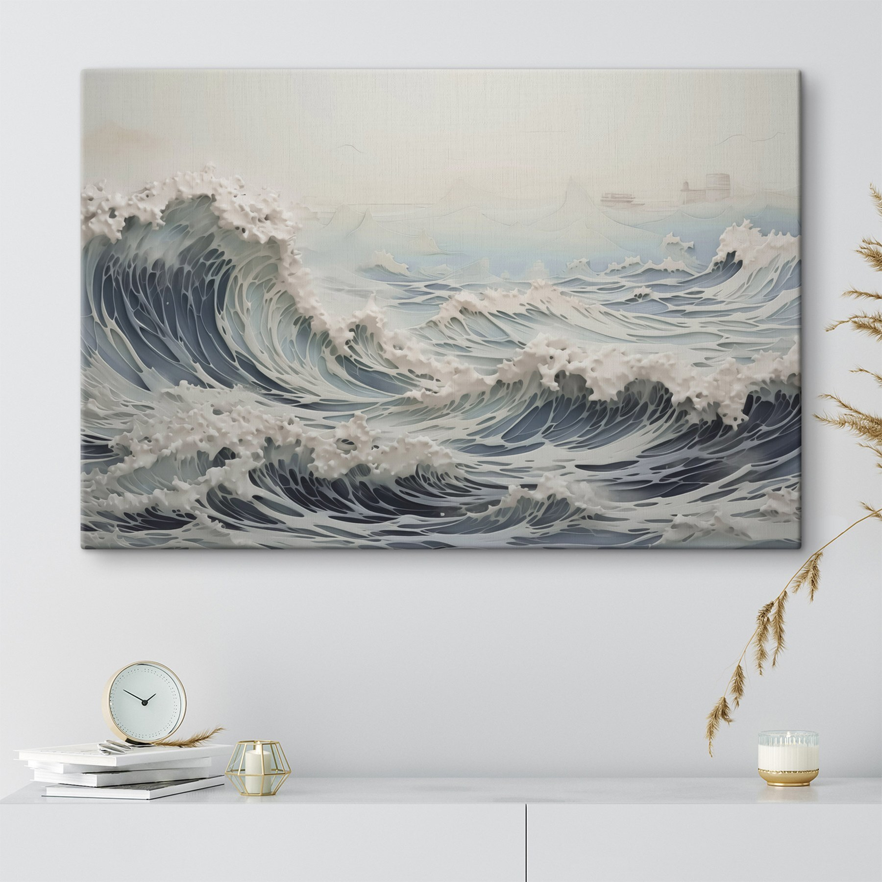 Imaginați-vă că stați într-o cameră confortabilă și admirați „Valuri mari în ocean” de peste drum. E ca și cum ați avea o bucată din ocean chiar acasă, fără nisip în pantofi! Opera de artă surprinde acele creste superbe și spumoase care se revarsă în cascadă, dând senzația că o briză ușoară ar putea să treacă prin ea. Perfectă pentru a visa cu ochii deschiși la vacanțe la plajă sau nopți confortabile acasă. Combinați-o cu o pătură moale și poate câteva lumânări cu aromă de plajă, și sunteți gata. S-ar putea să vă inspire să vă planificați următoarea escapadă la mare – sau cel puțin o ceașcă fierbinte de ceva liniștitor!