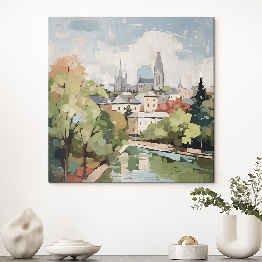 Transformați un perete gol într-un refugiu confortabil cu această fermecătoare imprimare pe pânză a unui peisaj urban, completată cu copaci și un râu strălucitor. Imaginați-vă că o agățați în sufragerie sau în birou – brusc, acel spațiu plictisitor pare o mică escapadă. Paleta de culori delicate conferă o atmosferă calmă, perfectă pentru relaxare după o zi lungă sau pentru a vă bucura în timpul pauzelor de cafea, în timp ce vă uitați la ea și visați cu ochii deschiși. Este ca și cum ați avea o fereastră către o altă lume, unde fiecare privire invită la o nouă poveste. Aveți încredere că va conferi decorului dvs. un plus de eleganță relaxată – cine ar fi crezut că pereții pot fi atât de primitori?