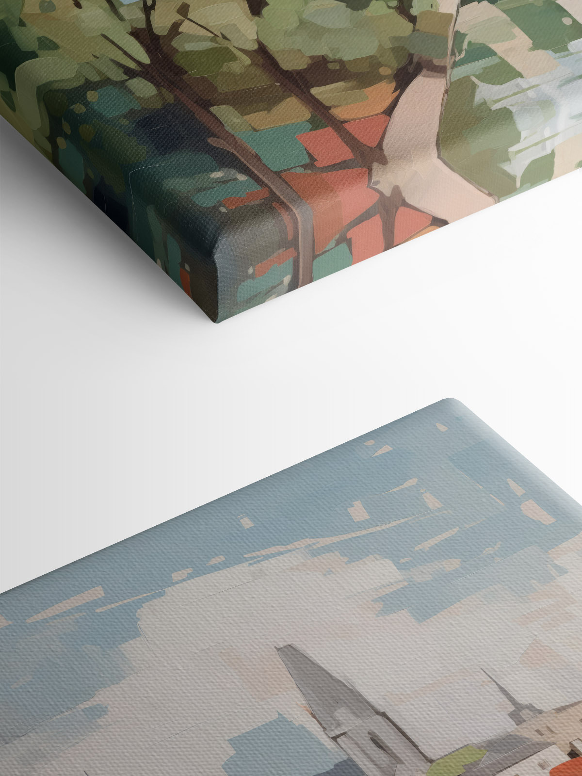 Transformați un perete gol într-un refugiu confortabil cu această fermecătoare imprimare pe pânză a unui peisaj urban, completată cu copaci și un râu strălucitor. Imaginați-vă că o agățați în sufragerie sau în birou – brusc, acel spațiu plictisitor pare o mică escapadă. Paleta de culori delicate conferă o atmosferă calmă, perfectă pentru relaxare după o zi lungă sau pentru a vă bucura în timpul pauzelor de cafea, în timp ce vă uitați la ea și visați cu ochii deschiși. Este ca și cum ați avea o fereastră către o altă lume, unde fiecare privire invită la o nouă poveste. Aveți încredere că va conferi decorului dvs. un plus de eleganță relaxată – cine ar fi crezut că pereții pot fi atât de primitori?
