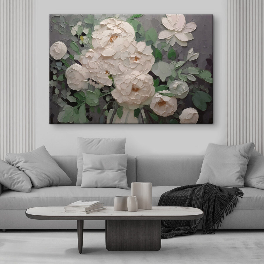 Luminează-ți spațiul cu această imprimare încântătoare pe pânză cu flori albe de vis. Imaginați-vă că intrați într-o cameră și sunteți întâmpinați de această frumusețe moale, delicată, care se simte ca o gură de aer proaspăt. Nuanțele subtile dansează împreună, creând un fundal liniștitor perfect pentru orice colț. Fie că este agățată deasupra unui fotoliu confortabil de lectură sau ca piesă centrală într-o cameră de zi modernă, această operă de artă aduce fără efort o atingere a naturii în interior. În plus, stârnește conversații – cine nu ar vrea să vorbească despre aceste flori uimitoare? Perfect pentru a adăuga căldură și acel factor “wow” atât de căutat!