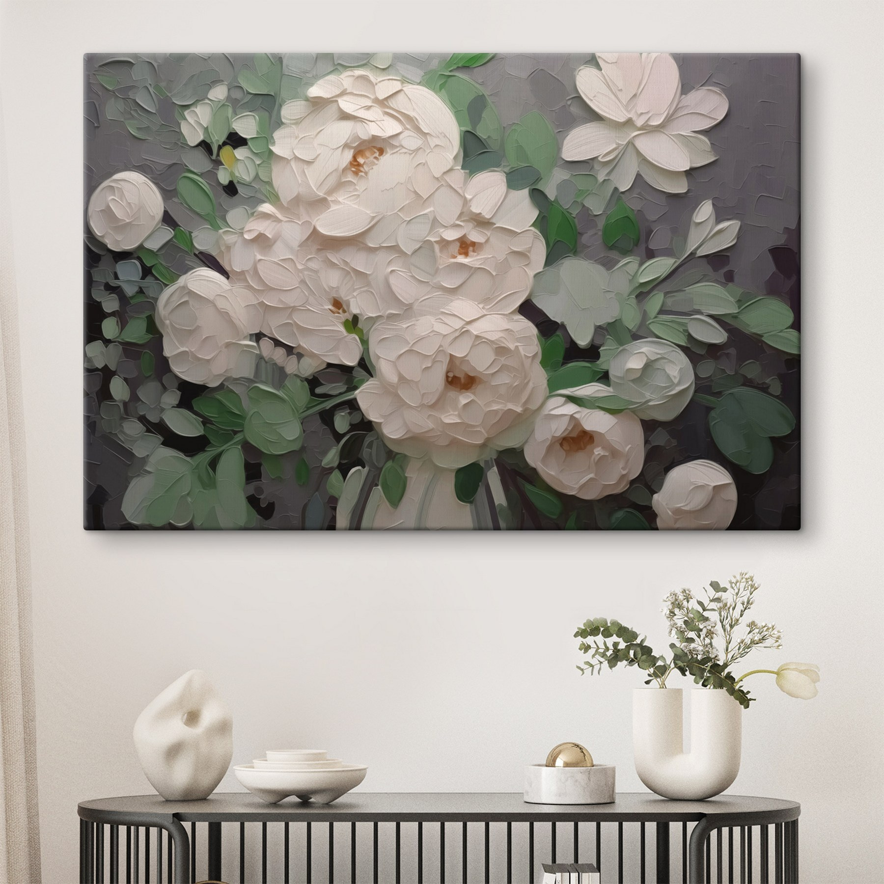 Luminează-ți spațiul cu această imprimare încântătoare pe pânză cu flori albe de vis. Imaginați-vă că intrați într-o cameră și sunteți întâmpinați de această frumusețe moale, delicată, care se simte ca o gură de aer proaspăt. Nuanțele subtile dansează împreună, creând un fundal liniștitor perfect pentru orice colț. Fie că este agățată deasupra unui fotoliu confortabil de lectură sau ca piesă centrală într-o cameră de zi modernă, această operă de artă aduce fără efort o atingere a naturii în interior. În plus, stârnește conversații – cine nu ar vrea să vorbească despre aceste flori uimitoare? Perfect pentru a adăuga căldură și acel factor “wow” atât de căutat!