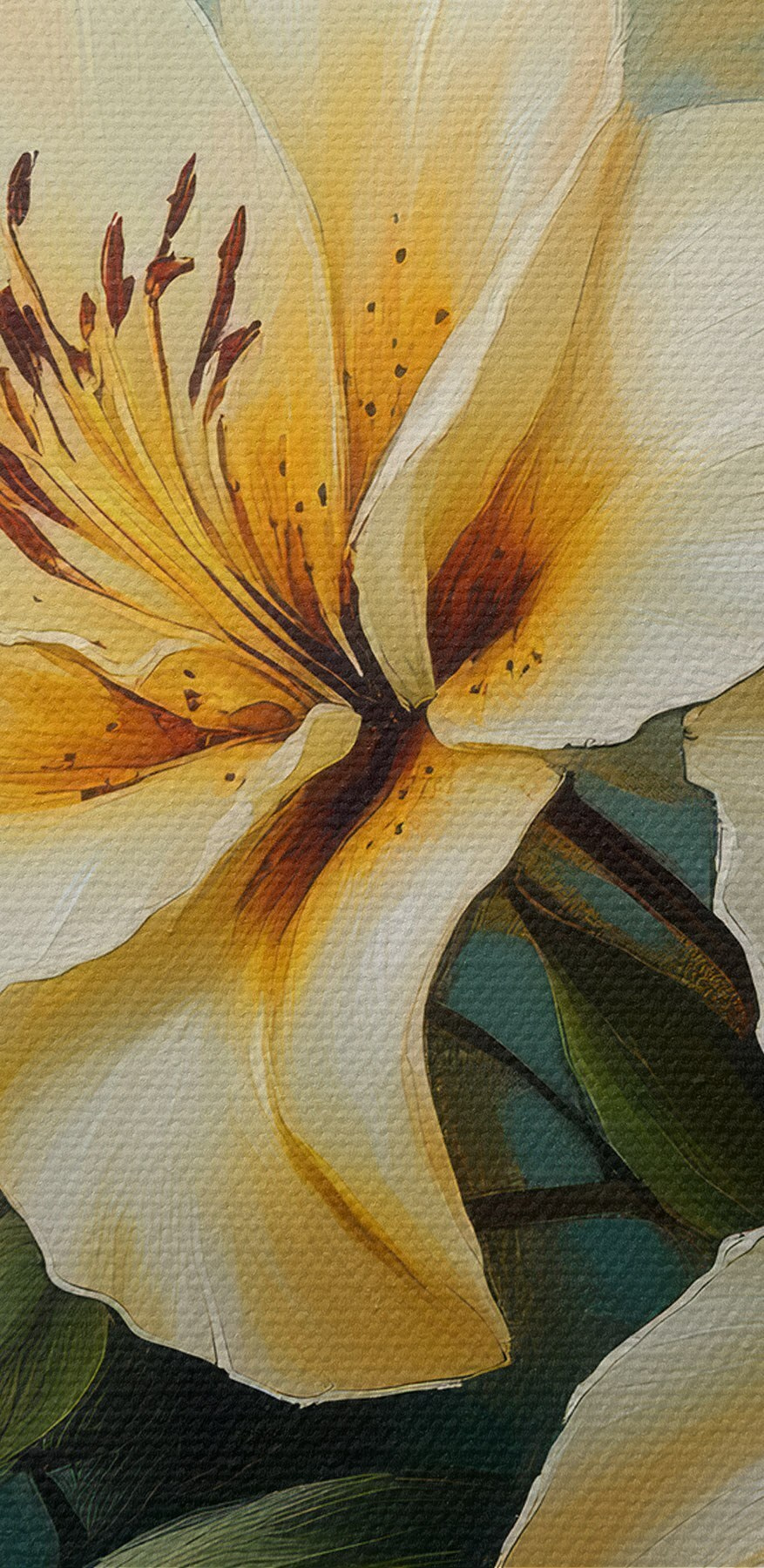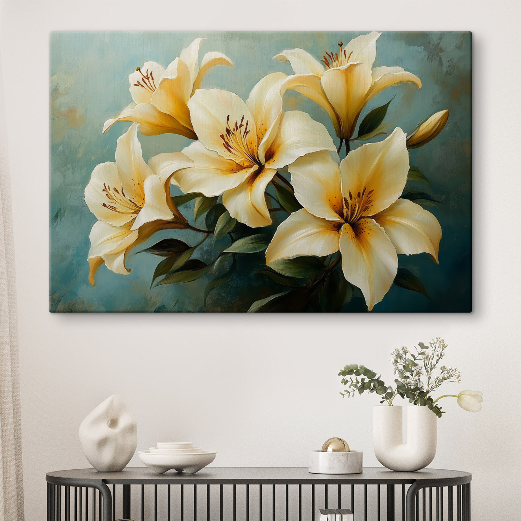 Înveseliți-vă spațiul cu această uimitoare imprimare pe pânză cu flori albe. Nu este doar artă, este ca o gură de aer proaspăt în camera dvs. Imaginați-vă: intrați după o zi lungă, iar aceste flori vesele vă întâmpină, ca niște mici prieteni care vă spun: „Hei, totul va fi bine!” Culorile delicate și petalele detaliate creează o atmosferă calmă, perfectă pentru un colț confortabil de lectură sau o zonă elegantă de luat masa. În plus, când vin oaspeții, vor fi atrași de frumusețea sa, ca moliile de flacără. Este un subiect de conversație încântător! Această piesă îți învelește cu adevărat spațiul în căldură și pozitivitate.