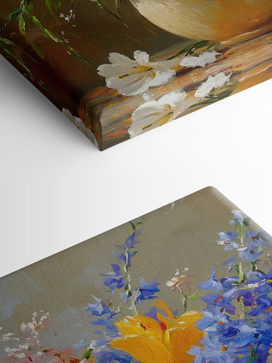 Înveseliți-vă spațiul cu această imprimare pe pânză care prezintă un buchet uimitor de flori într-o vază. Imaginați-vă că veniți acasă după o zi lungă și sunteți întâmpinați de flori vibrante care vă șoptesc: „Luați-vă un moment. Bucură-te de viață”. Această piesă emană o atmosferă caldă și un plus de farmec, perfectă pentru orice cameră – sufragerie, dining sau chiar colțul confortabil în care savurezi cafeaua de dimineață. Este ca și cum ai avea o mică grădină în interior, fără udat și fără insecte enervante. În plus, cui nu-i plac florile care nu se ofilesc? Agăț-o și lasă culorile vesele să-ți aducă bucurie și să-ți inspire amintiri.