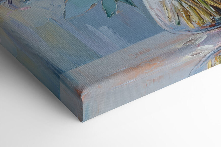 Înveseliți-vă spațiul cu această uimitoare imprimare pe pânză a unui buchet plin de personalitate! Culorile bogate și florile vibrante parcă sar din pânză, aducând bucurie și căldură în orice cameră. Imaginați-vă un colț confortabil, iar această frumusețe furând atenția – perfect pentru momentele în care doriți doar să vă relaxați cu o carte bună sau să savurați o ceașcă de ceai. Este ca și cum ați avea un strop de natură în interior, fără a mai fi nevoie de stropitoare! În plus, stârnește conversații – oaspeții vor întreba cu siguranță: „De unde ai luat asta?”. Este o artă care pare vie, făcând din fiecare privire o mini-evadare în frumusețe. Perfectă pentru iubitorii de flori sau pentru oricine are nevoie de un strop de bucurie!