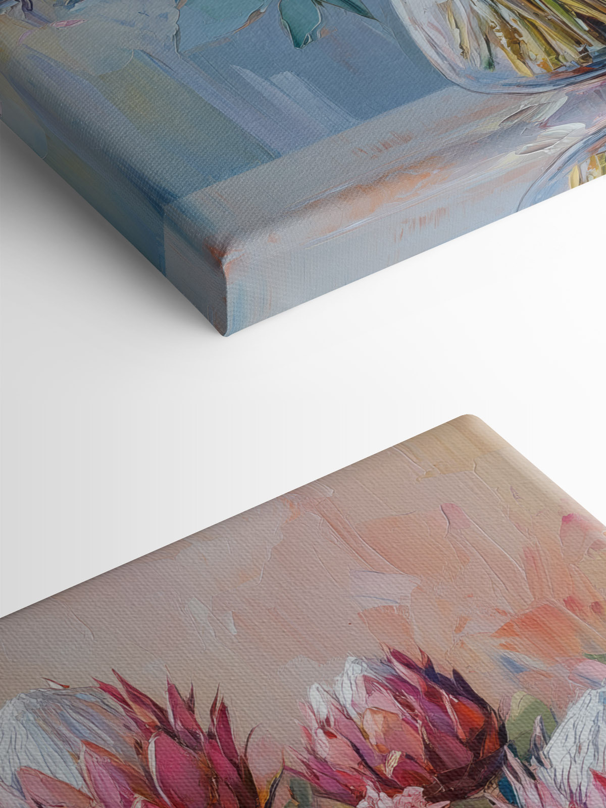Înveseliți-vă spațiul cu această uimitoare imprimare pe pânză a unui buchet plin de personalitate! Culorile bogate și florile vibrante parcă sar din pânză, aducând bucurie și căldură în orice cameră. Imaginați-vă un colț confortabil, iar această frumusețe furând atenția – perfect pentru momentele în care doriți doar să vă relaxați cu o carte bună sau să savurați o ceașcă de ceai. Este ca și cum ați avea un strop de natură în interior, fără a mai fi nevoie de stropitoare! În plus, stârnește conversații – oaspeții vor întreba cu siguranță: „De unde ai luat asta?”. Este o artă care pare vie, făcând din fiecare privire o mini-evadare în frumusețe. Perfectă pentru iubitorii de flori sau pentru oricine are nevoie de un strop de bucurie!