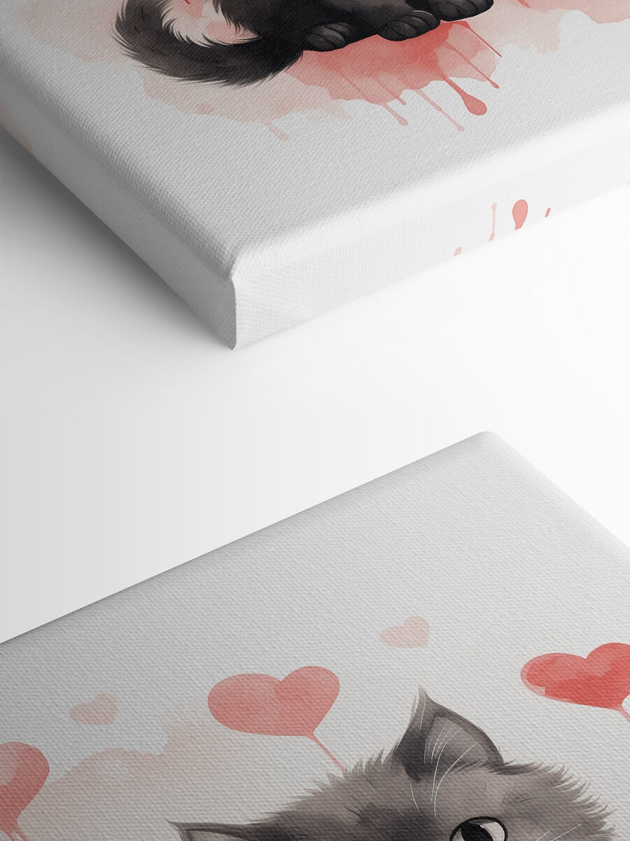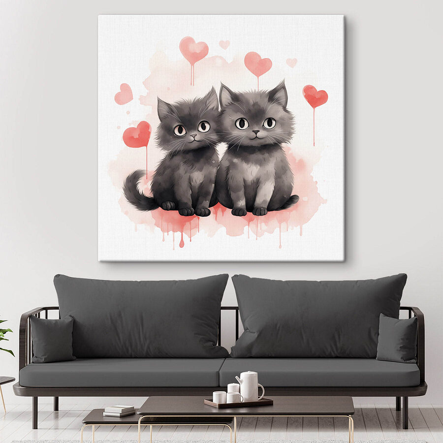 Adăugați un strop de fantezie oricărui perete cu fermecătoarele „Tablouri pe pânză cu două pisici așezate una lângă alta”. Aceste adorabile ghemotoace de blană, așezate confortabil în mijlocul unor inimi roz, aduc instantaneu căldură în cameră. Imaginați-vă că treceți pe lângă ele și le surprindeți privirile dulci și curioase – parcă v-ar spune: „Bună! Dragostea plutește în aer, nu-i așa?” Perfecte pentru sufragerii confortabile sau colțuri cu tematică felină, aceste imprimeuri invită la o atmosferă care vă va topi inima. Fiecare privire poate stârni un pic de bucurie, făcând orice spațiu să pară un pic mai special. Cine nu și-ar dori o doză zilnică de prietenie felină?
