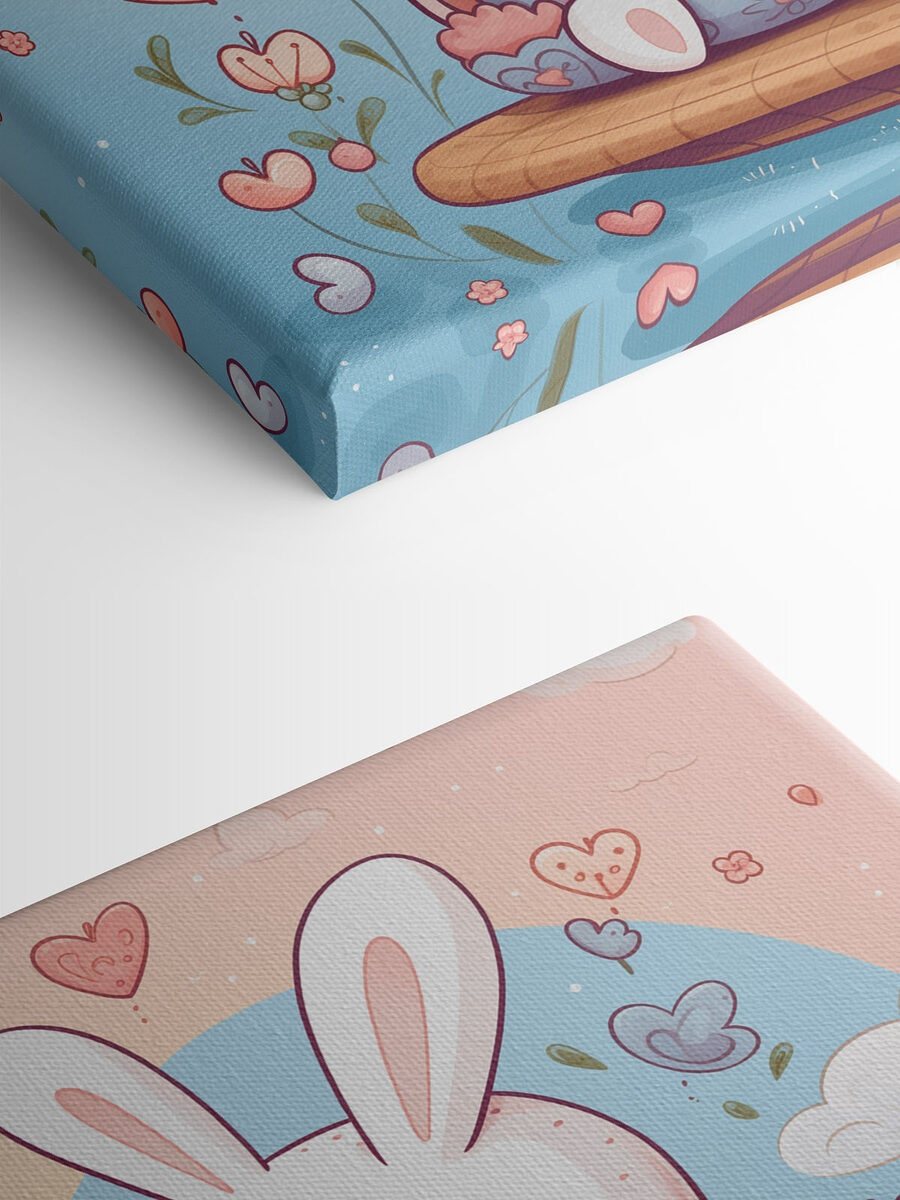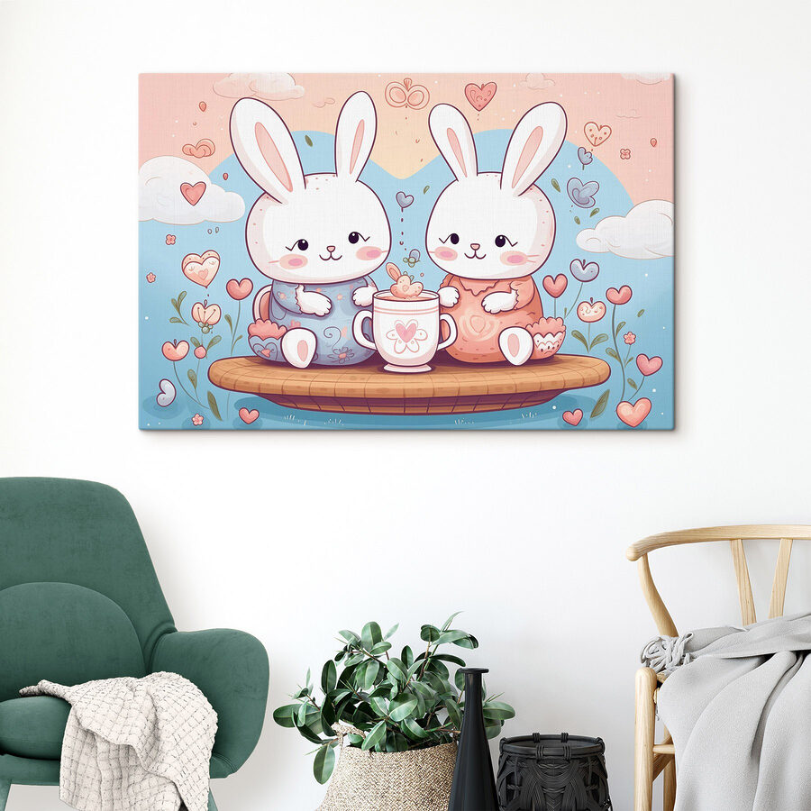 Meet a delightful duo that’s sure to warm your heart! This charming canvas print features a couple of bunnies cozied up on a tray, sharing a cup of tea like they’re the best of friends. Surrounded by sweet blooms and hearts, it’s a scene that feels like a cozy afternoon in a sunlit space. Imagine this playful artwork brightening up a nursery, bringing smiles to every visitor. Perfect for animal lovers or anyone needing a splash of joy, these little bunnies might just inspire a moment of relaxation—or a teacup talk about all things fluffy. Who can resist that?