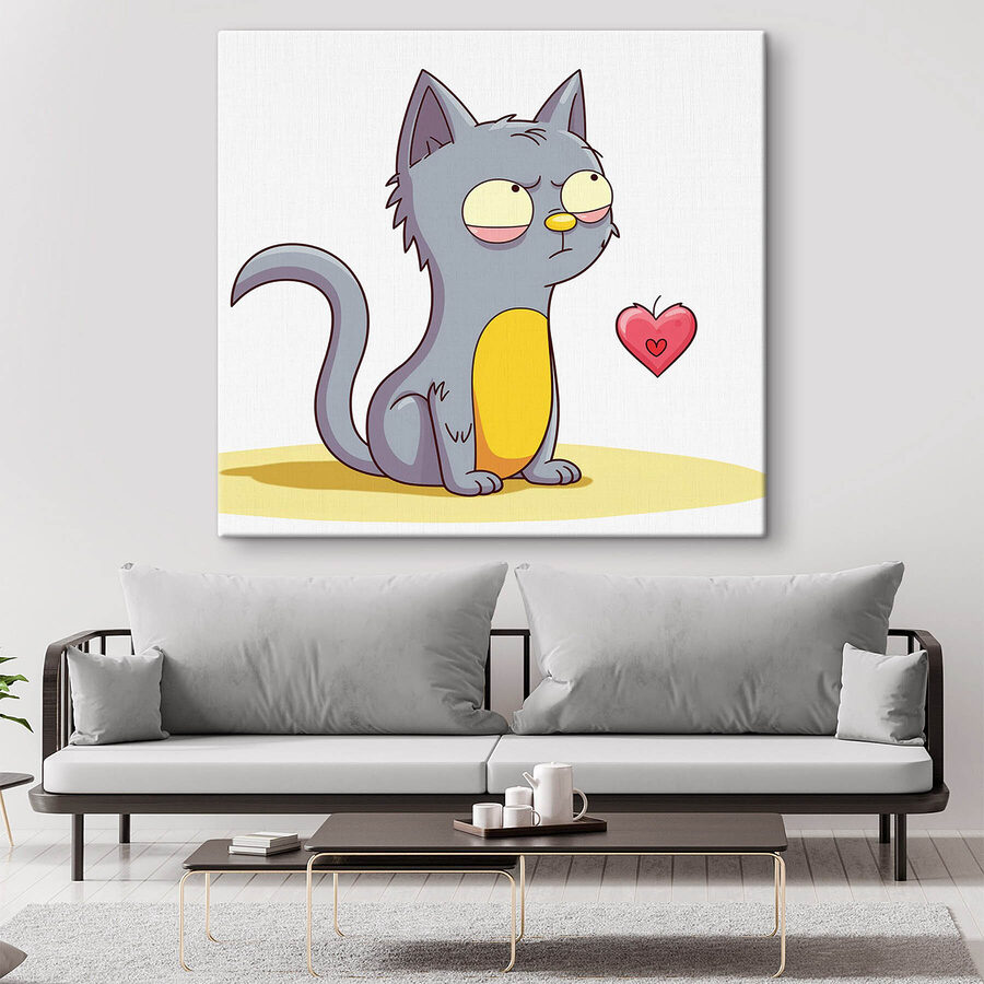 If you’ve ever seen a cat give a side-eye to a heart, this canvas print captures that vibe perfectly! Featuring a quirky cartoon cat gazing at a love-filled heart, it adds a playful touch to any space. Imagine walking by and catching sight of this little guy—he’s got a personality, for sure! It’s like he’s pondering life’s biggest mysteries… like why humans can’t just serve dinner on time. Perfect for cat lovers or anyone wanting a dash of whimsy on their wall. This piece brings smiles and those cozy feels—ideal for a living room or a snug corner of your office. Go on, let this cat charm your space!