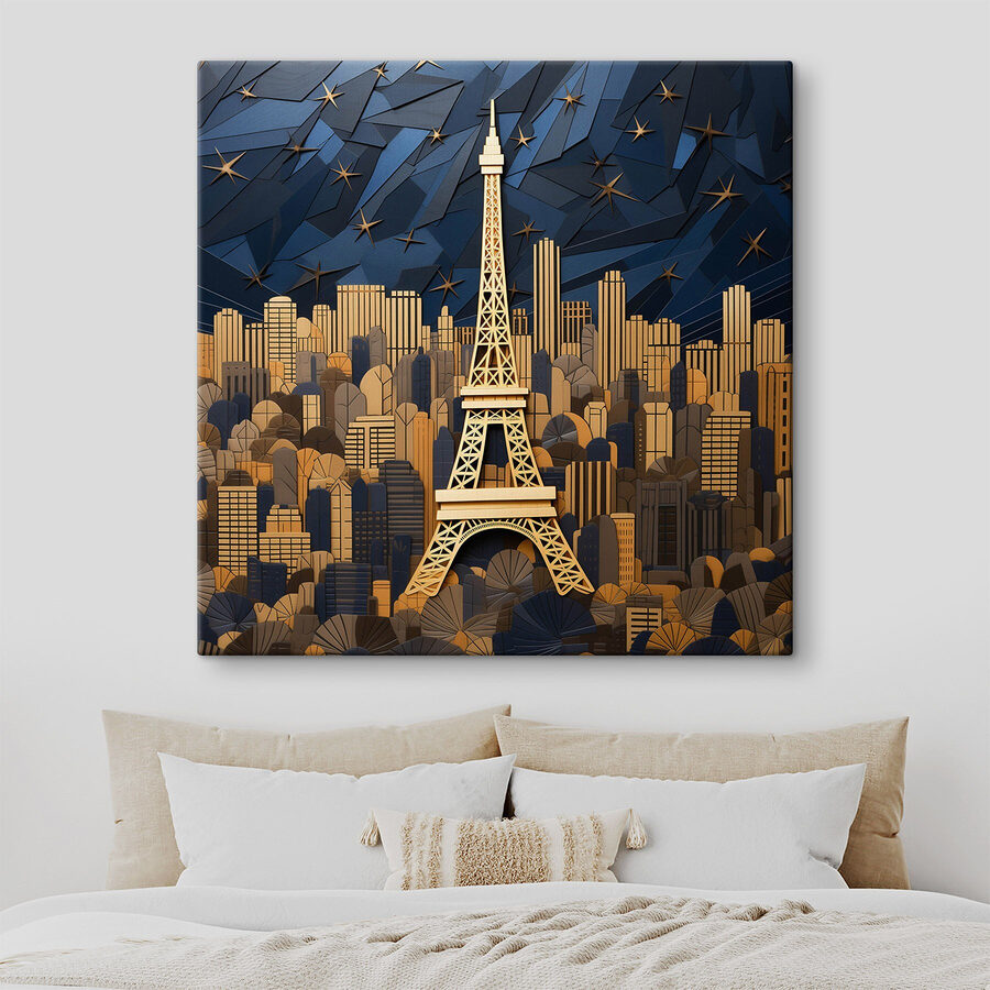 Pășește într-un peisaj urban de vis cu această uimitoare imprimare pe pânză care înfățișează Turnul Eiffel pe un fundal capricios, asemănător hârtiei. Fiecare privire te poate transporta într-o cafenea pariziană pitorească, unde aroma produselor de patiserie proaspete umple aerul. Este ca și cum ai aduce o bucățică din farmecul orașului direct în sufrageria ta! Amestecul jucăuș de texturi și culori adaugă un strop de căldură, făcându-l un subiect de conversație instantaneu. Imaginați-vă-l într-un colț confortabil sau deasupra unei canapele moderne – impresionant! În plus, cine nu și-ar dori o mică bucată din Paris pentru a-și înveseli ziua? Perfect pentru cei care iubesc un strop de aventură în decorul lor.