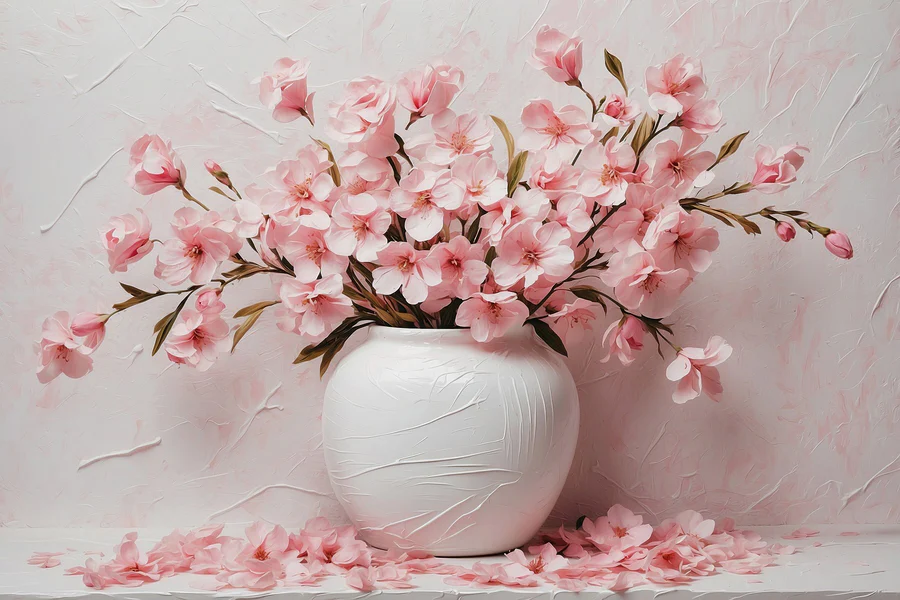 Înveseliți orice spațiu cu această minunată „Vază cu flori roz pe pânză”. Imaginați-vă că intrați în camera dvs. și sunteți întâmpinați de un buchet vesel care nu se ofilește niciodată. Aceste flori roz sunt pline de viață, provocând un zâmbet sau poate chiar un mic dans fericit. Nuantele pastelate delicate creează o atmosferă senină, perfectă pentru relaxare după o zi lungă. Este ca și cum ai aduce o bucată de primăvară în interior, fără strănuturi, desigur. Perfectă deasupra unei canapele confortabile sau într-un colț luminat de soare, această pictură pe pânză șoptește căldură și farmec. Spune adio pereților goi și salută florile încântătoare!