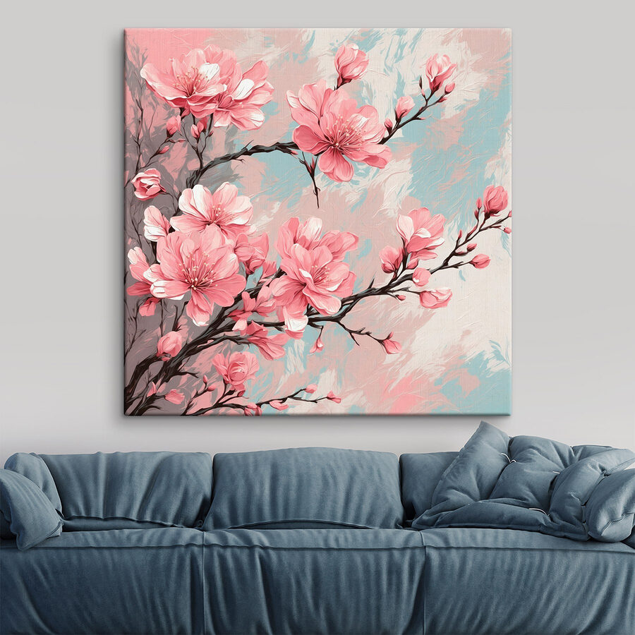 Înveseliți orice încăpere cu această superbă imprimare pe pânză cu flori roz pe o ramură. Este ca și cum ați aduce un strop de primăvară în interior – cui nu i-ar plăcea asta? Nuantele delicate și pensulele moi creează o atmosferă calmă și revigorantă, perfectă pentru un colț confortabil de lectură sau o bucătărie plină de viață. Imaginează-ți cum savurezi o cafea în timp ce aceste flori dau viață pereților tăi. Este exact ceea ce trebuie pentru a stârni bucurie! În plus, cu aceste flori vesele, chiar și zilele de luni ar putea începe să pară un pic mai fabuloase. Hai să facem acel perete să zâmbească!