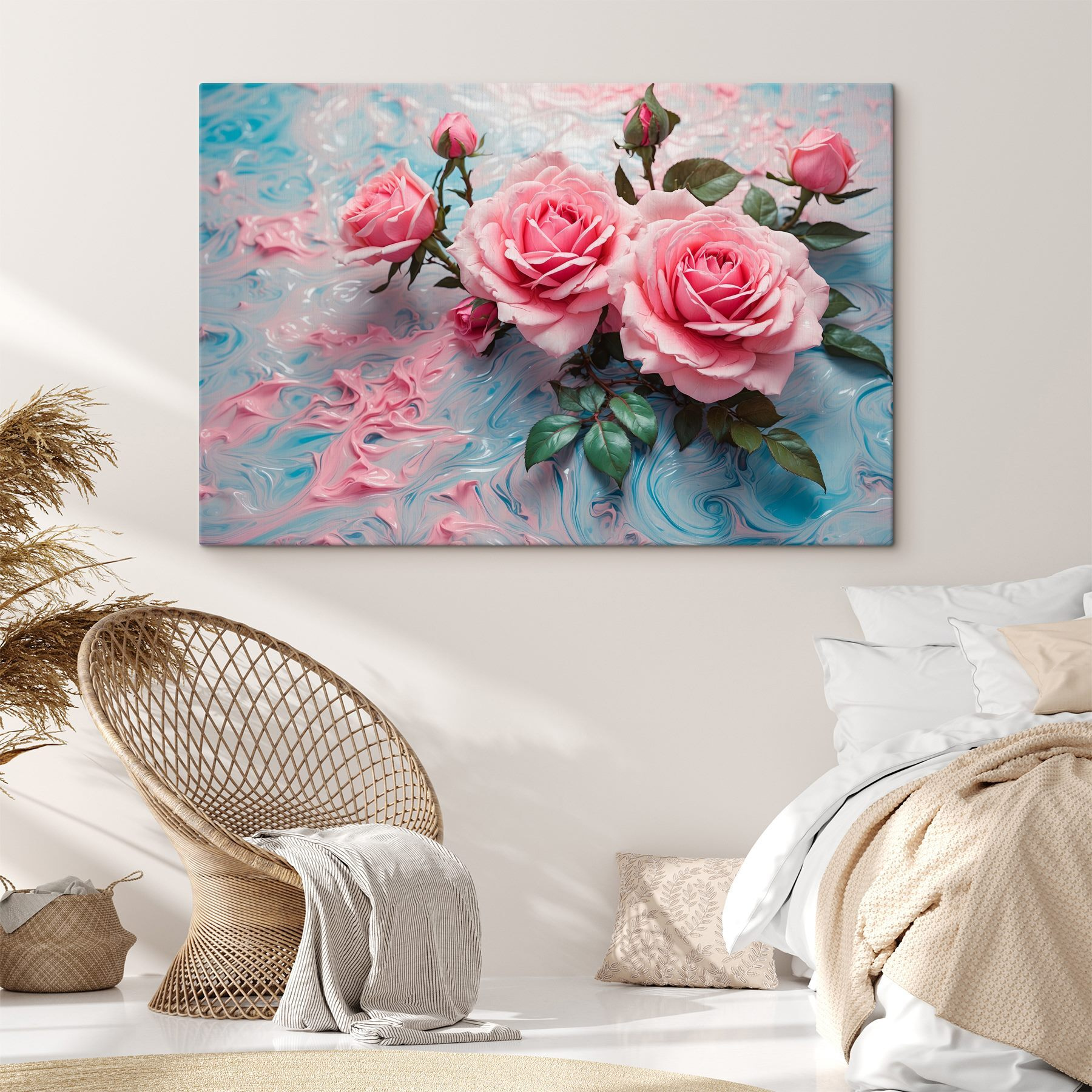 Add a splash of soft elegance to your space with this lovely canvas print featuring a vibrant group of pink roses resting on a dreamy blue and white surface. Just picture it—waking up to this beauty, the gentle hues inviting a smile before the coffee even brews. The roses seem to whisper secrets of springtime, and that swirl of colors? Pure bliss. It’s like having a piece of nature right in your home, always in bloom and never needing watering. Perfect for a cozy corner or a statement wall, this artwork brings a cheerful vibe—no green thumb required. Seriously, who knew decor could feel so alive?
