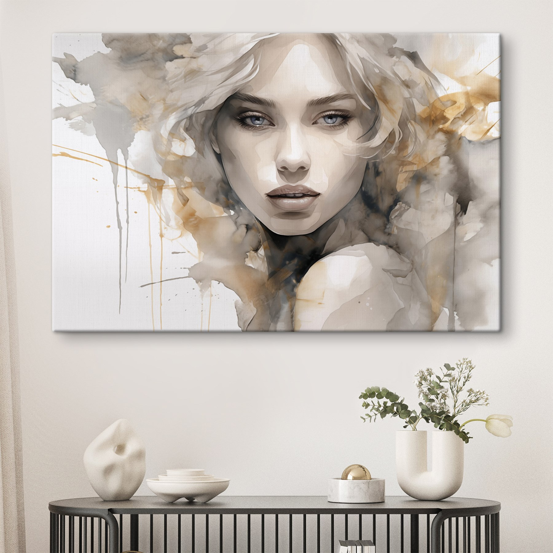This stunning canvas print, featuring a woman’s face splashed with vibrant paint, is a captivating addition to any wall. It’s like catching a glimpse of art in full motion—bold, expressive, and a bit mysterious. Imagine walking by and feeling that paint splatter jump out at you. The delicate brushstrokes and soft palette create a dreamy vibe, perfect for a serene bedroom or an inspiring office space. Each time someone catches sight of it, it’s bound to spark a conversation or even elicit a smile. Add a touch of artistry to your life; this piece practically whispers creativity, inviting countless daydreams over coffee or quiet moments. Who wouldn’t want that?