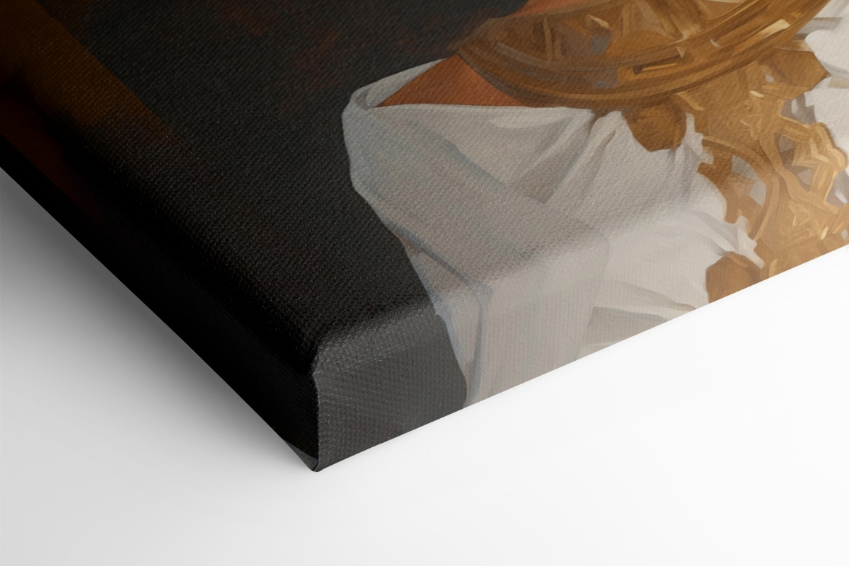 Pășiți într-o lume plină de farmec cu „Majestic Beauty in Timeless Attire”. Această imprimare pe pânză conferă o prezență elegantă care va face orice spațiu să pară puțin mai special. Imaginați-vă: vă relaxați în sufragerie și această piesă uimitoare vă atrage atenția; parcă ar avea o poveste de spus. Regalitatea ei nu numai că atrage atenția, dar stârnește și curiozitatea, șoptind povești despre frumusețea antică. Aproape că puteți auzi foșnetul ușor al veșmântului ei. Perfectă pentru serile confortabile petrecute acasă sau pentru întâlnirile informale cu prietenii, această lucrare adaugă o notă caldă și artistică. Nu este doar un element decorativ, ci și un subiect de conversație. De ce să nu vă decorați pereții cu puțină personalitate? Merită!