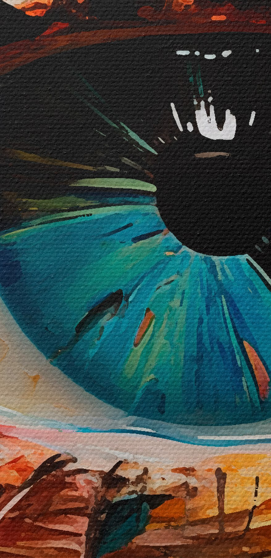 Scufundați-vă într-un strop de culori vii cu această imprimare pe pânză care aduce o explozie de creativitate în orice cameră. Imaginați-vă că intrați în spațiul dvs. și sunteți întâmpinați de acest ochi hipnotizant, învolburat de texturi și emoții. Este ca și cum arta șoptește secrete, atrăgându-vă pentru o privire mai atentă. Fie că luminează un colț confortabil sau stârnește conversații în camera dvs. de zi, această piesă face minuni. Adăugați o notă de dramatism și intrigă – cine nu și-ar dori un pic de fler artistic în viața sa? Este o modalitate vibrantă de exprimare a personalității și, sincer, nu se demodează niciodată!