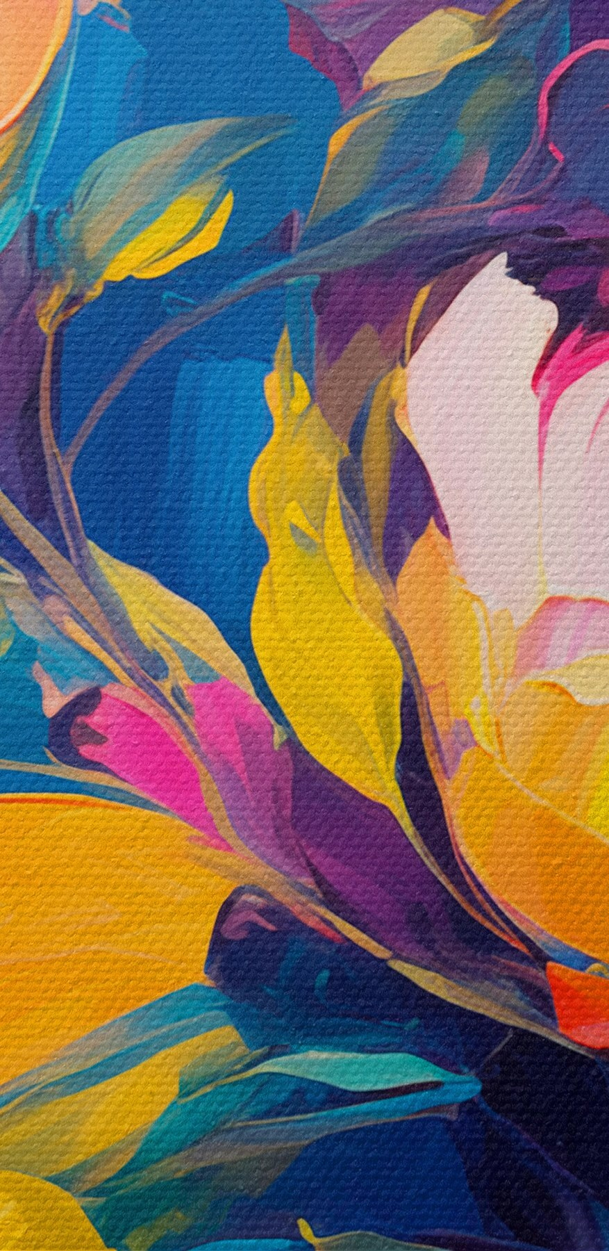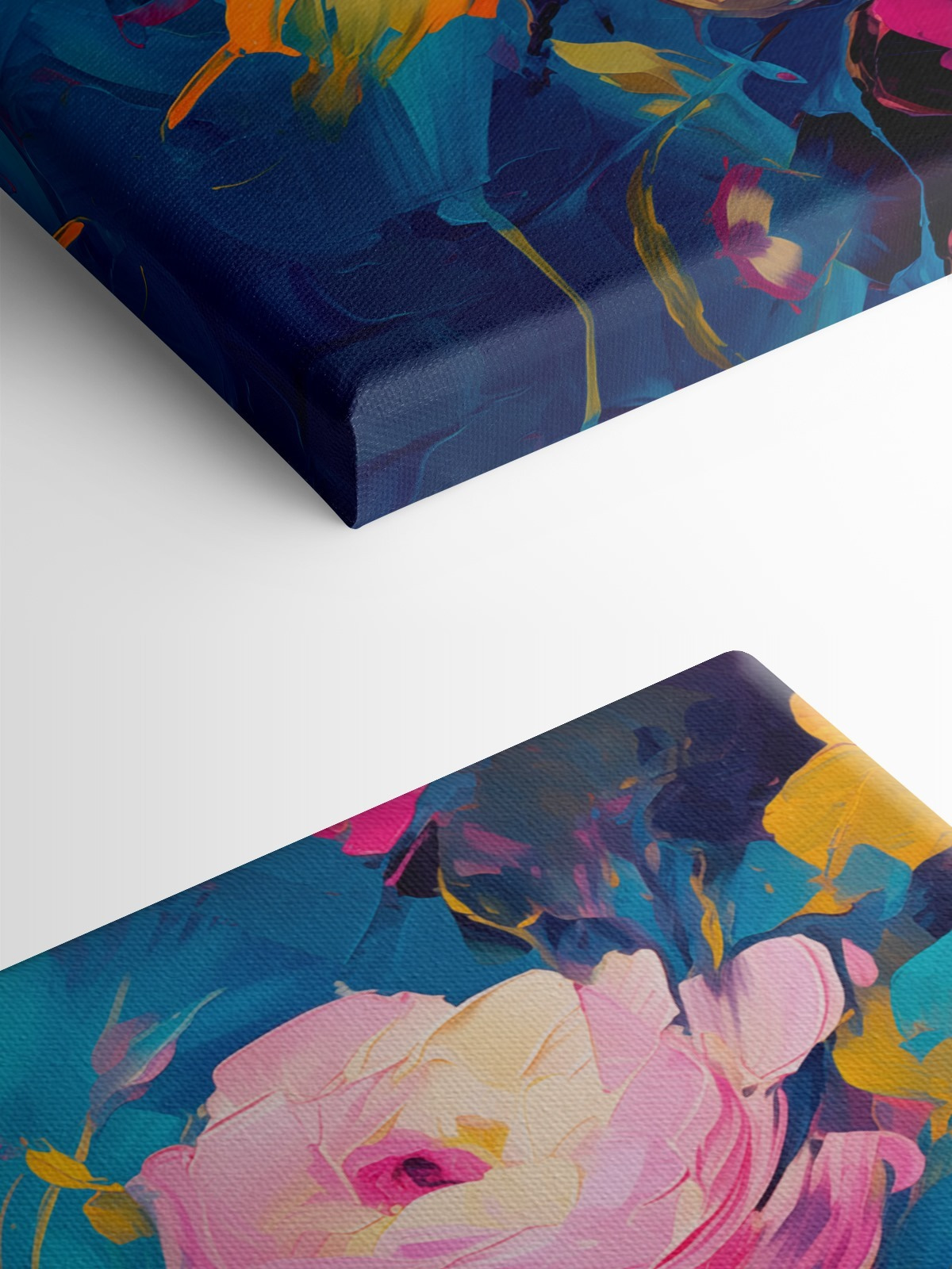 Înveseliți orice încăpere cu această superbă imprimare pe pânză cu flori dansând pe un fundal albastru intens. Este ca un buchet care nu se ofilește niciodată, aducând o explozie de culoare și bucurie fără a fi nevoie de o stropitoare. Imaginați-vă că îl priviți în timp ce savurați o cafea într-o duminică leneșă sau vă adunați prietenii pentru o seară de jocuri – nuanțele vibrante vor stârni conversații și vor ridica moralul. Perfect pentru a adăuga un strop de veselie livingului dvs. sau pentru a da personalitate acelui perete gol și incomod. Gândiți-vă la el ca la un memento zilnic că frumusețea poate fi ușoară și omniprezentă. Cine nu și-ar dori asta?