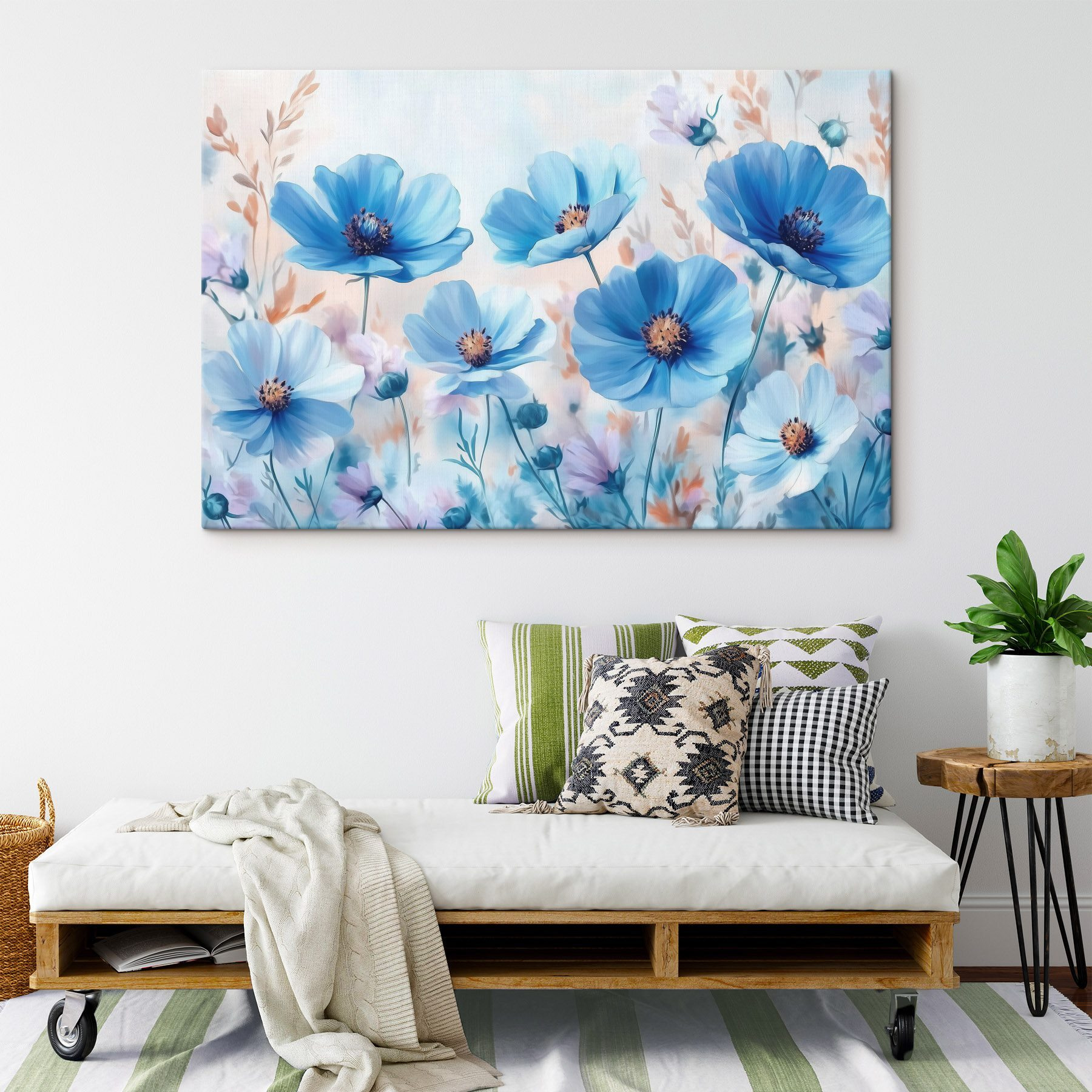 Înveseliți orice spațiu cu această uimitoare „Tablou pe pânză cu buchet de flori albastre”. Imaginați-vă că intrați într-o cameră și sunteți întâmpinați de o briză proaspătă de flori albastre care dansează ușor pe un fundal pastelat. Este ca o mică bucată de natură, fără polen!