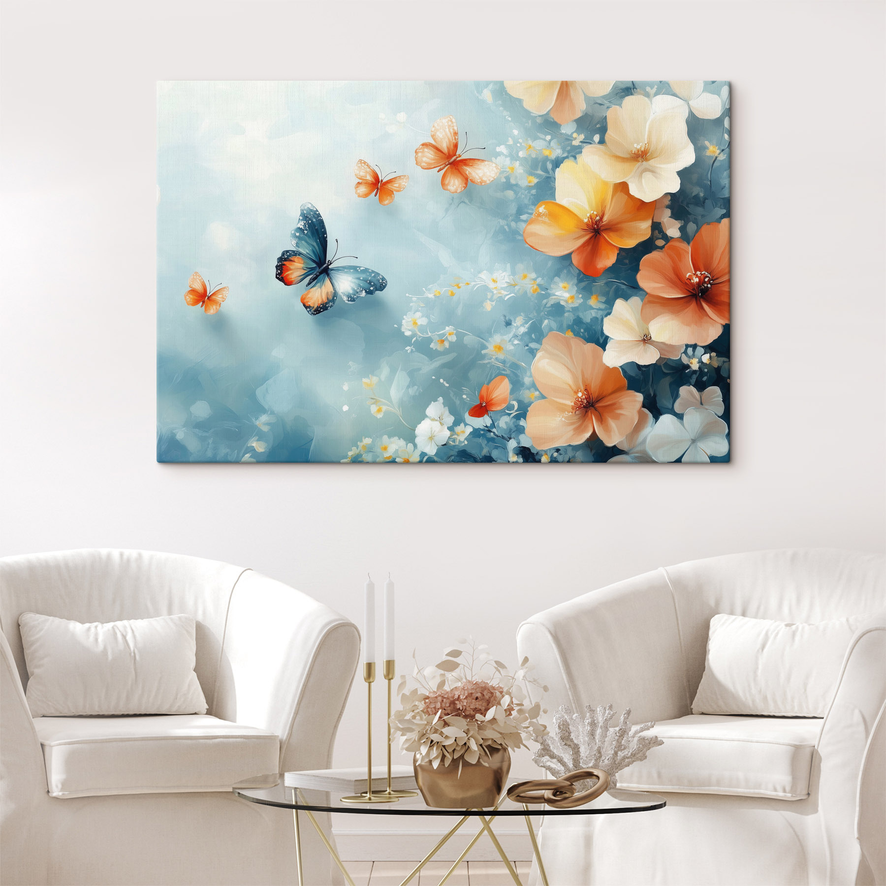 Înveseliți orice încăpere cu această uimitoare imprimare pe pânză cu fluturi și flori dansând pe un fundal albastru deschis. Este ca și cum natura ar fi organizat o mică petrecere pe peretele dvs.! Nuvelele vibrante și designul capricios invită la sentimente de căldură și bucurie. Imaginați-vă că savurați cafeaua de dimineață în timp ce admirați aceste creaturi încântătoare care zboară în jur – serios, există un început mai bun pentru o zi? Fie că este în sufragerie sau în zona de joacă a copiilor, această operă de artă adaugă un strop de veselie. Perfectă pentru cei care cred că puțină frumusețe poate transforma un spațiu într-un refugiu confortabil!