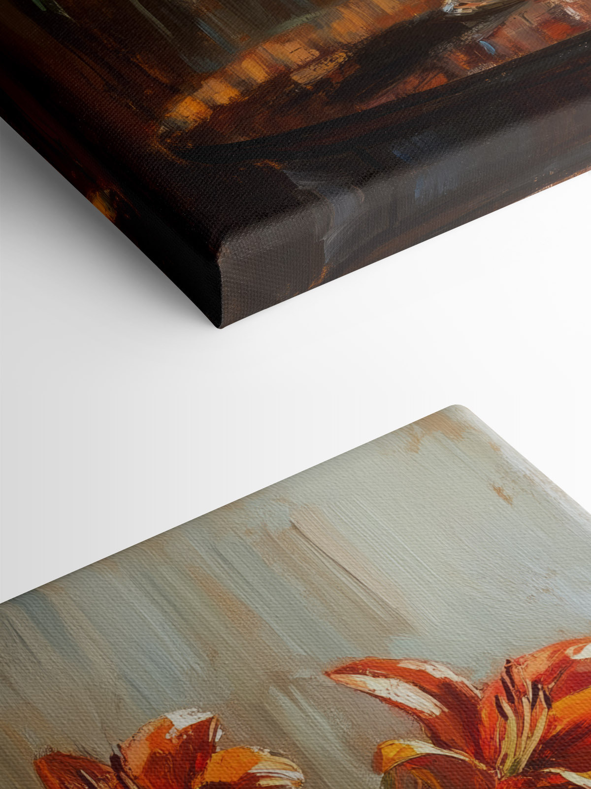 Aduceți un plus de energie vibrantă în orice spațiu cu această uimitoare imprimare pe pânză cu flori portocalii într-o vază de sticlă. Aceste flori parcă sar din pânză – îndrăznețe, strălucitoare și pline de personalitate! Imaginați-vă această operă de artă atârnată într-un colț confortabil sau într-o sufragerie plină de viață, unde oricine trece pe lângă ea nu poate să nu zâmbească. Este ca și cum ați avea o mică bucată de natură capturată în vopsea, gata să înveselească o zi ploioasă. Vaza de sticlă adaugă o notă de eleganță, creând un amestec perfect de farmec și veselie. Cine ar fi crezut că florile pot fi atât de înveselitoare?