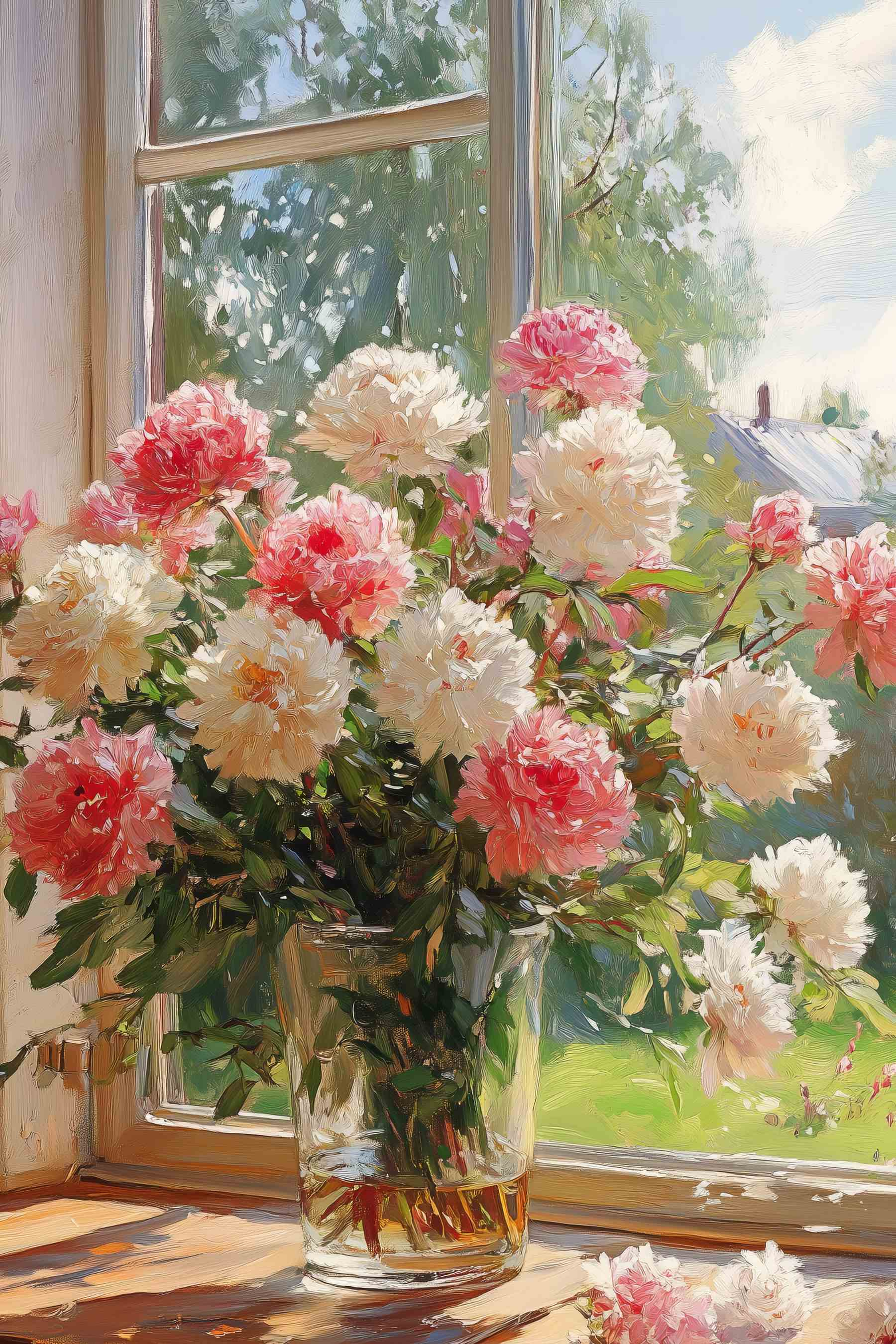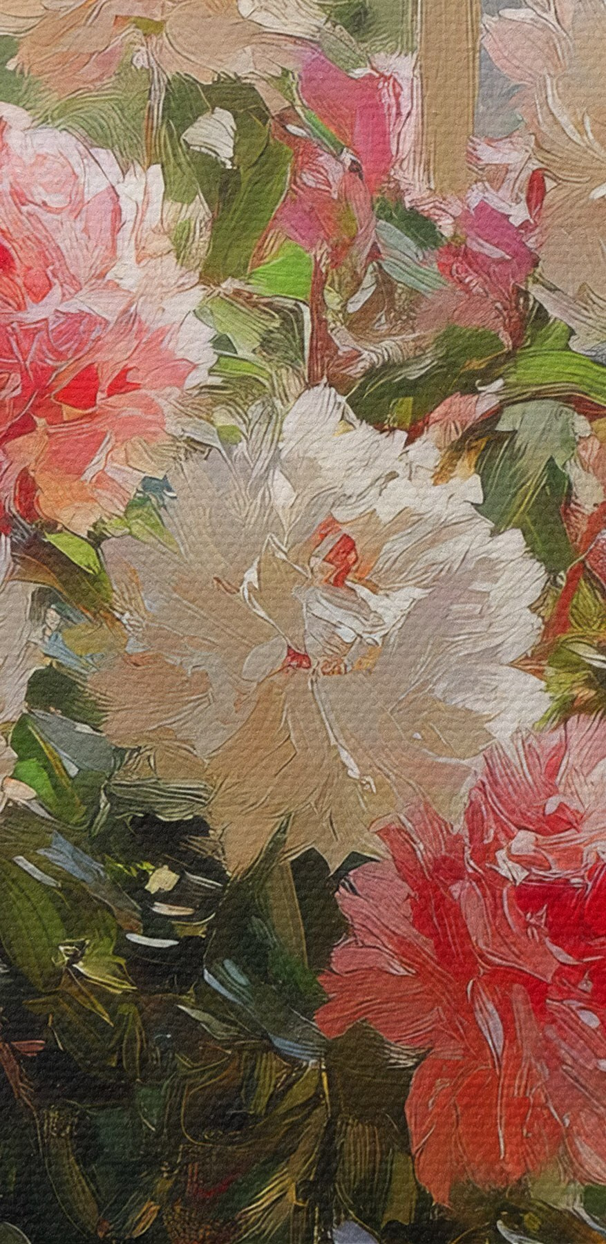 Înveseliți orice cameră cu printul pe pânză „Vaza cu flori în fața ferestrei”. Această piesă nu este doar un obiect decorativ, ci o experiență. Imaginați-vă că vă relaxați într-o după-amiază plăcută, cu razele soarelui pătrundând în cameră, în timp ce aceste flori frumoase vă amintesc de o zi însorită în grădină. Nuantele delicate de roz și alb ies în evidență pe fundalul relaxant, dând senzația că primăvara a decis să rămână pentru totdeauna. Perfectă pentru sufragerie, biroul de acasă sau chiar un colț confortabil pentru citit. Este ca și cum ai avea o bucată de natură în interior, fără alergii! Atmosfera veselă pe care o creează s-ar putea să vă inspire un zâmbet sau două, sau chiar să vă facă să doriți o ceașcă de ceai. Sincer, cui nu i-ar plăcea asta?