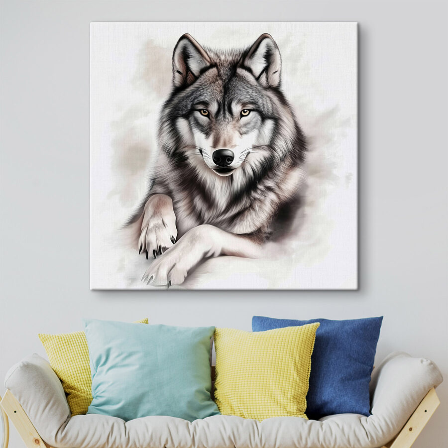 Faceți cunoștință cu un lup maiestuos care va deveni cu siguranță vedeta oricărei camere! Această imprimare pe pânză surprinde lupul relaxându-se și aruncându-vă o privire irezistibil de intensă, de parcă v-ar cunoaște toate secretele. Imaginați-vă această frumusețe deasupra unei canapele confortabile sau într-un colț de lectură, adăugând o notă de eleganță sălbatică spațiului dvs. Nuantele delicate din fundal pun în evidență trăsăturile impresionante ale lupului, făcându-l un subiect perfect de conversație. Nu este doar artă; este ca și cum ați avea un contact direct cu natura chiar în casa dvs. O notă de sălbăticie, un strop de personalitate – cine nu și-ar dori ca această creatură captivantă să vegheze asupra sa?