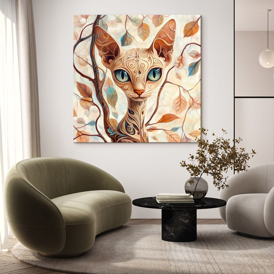 Vârtejurile și culorile sunt ca o briză ușoară într-o zi însorită, dând viață oricărui spațiu. Dacă v-ați dorit vreodată o notă capricioasă, această imprimare este alegerea perfectă. Vă va face să zâmbiți de fiecare dată când o veți privi. Perfectă pentru iubitorii de pisici, admiratorii de artă sau oricine apreciază o notă de neobișnuit. Cine ar fi crezut că o pisică poate fi atât de expresivă?