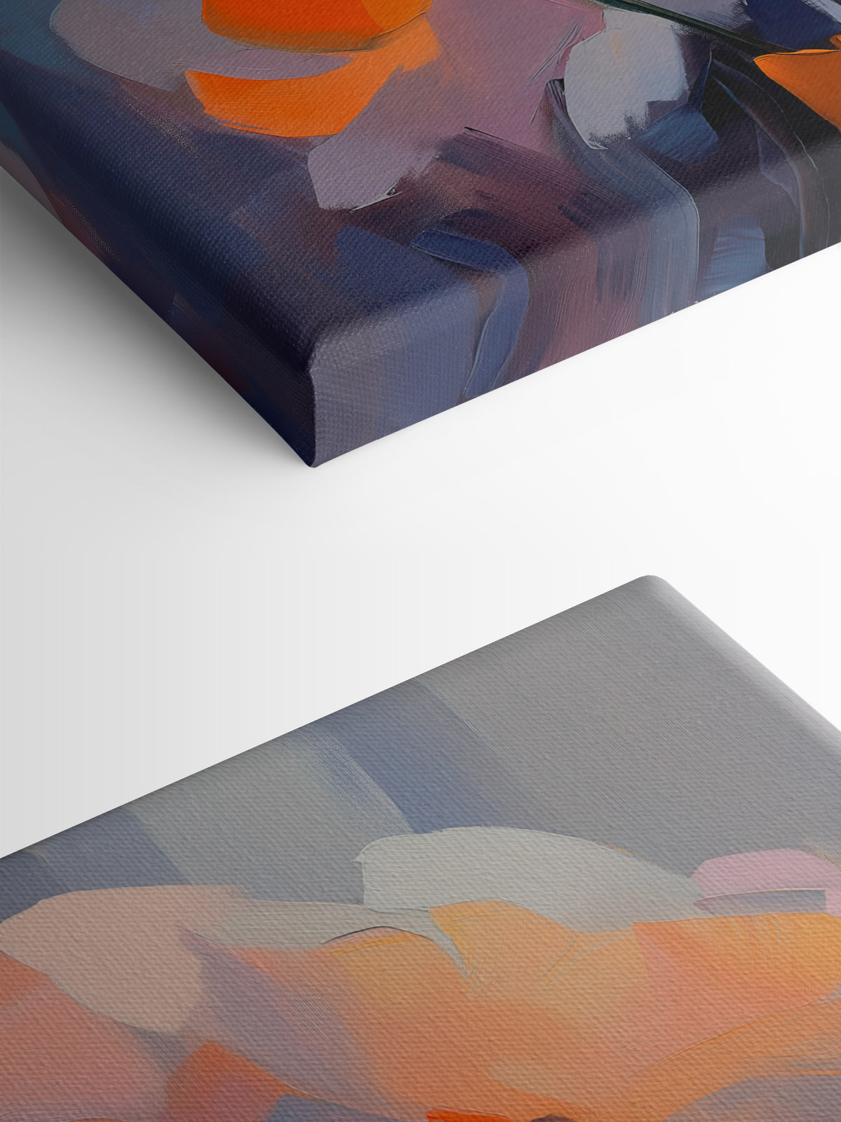 Înveseliți orice spațiu cu această imprimare uimitoare pe pânză cu flori albe care par să danseze pe perete. Nuanțele moi de portocaliu și albastru liniștit oferă un contrast blând, atrăgând privirea și făcând-o să zăbovească. Imaginați-vă sorbind cafea în timp ce aruncați o privire asupra acestor frumuseți – este ca și cum ați avea o mică grădină în interior. În plus, ele aduc o notă de seninătate fără a fi nevoie să le udați. Perfect pentru un colțișor confortabil sau poate pentru un living plin de viață, care ar avea nevoie de un strop de eleganță. Cine ar fi crezut că florile pot fi atât de fermecătoare, nu-i așa?
