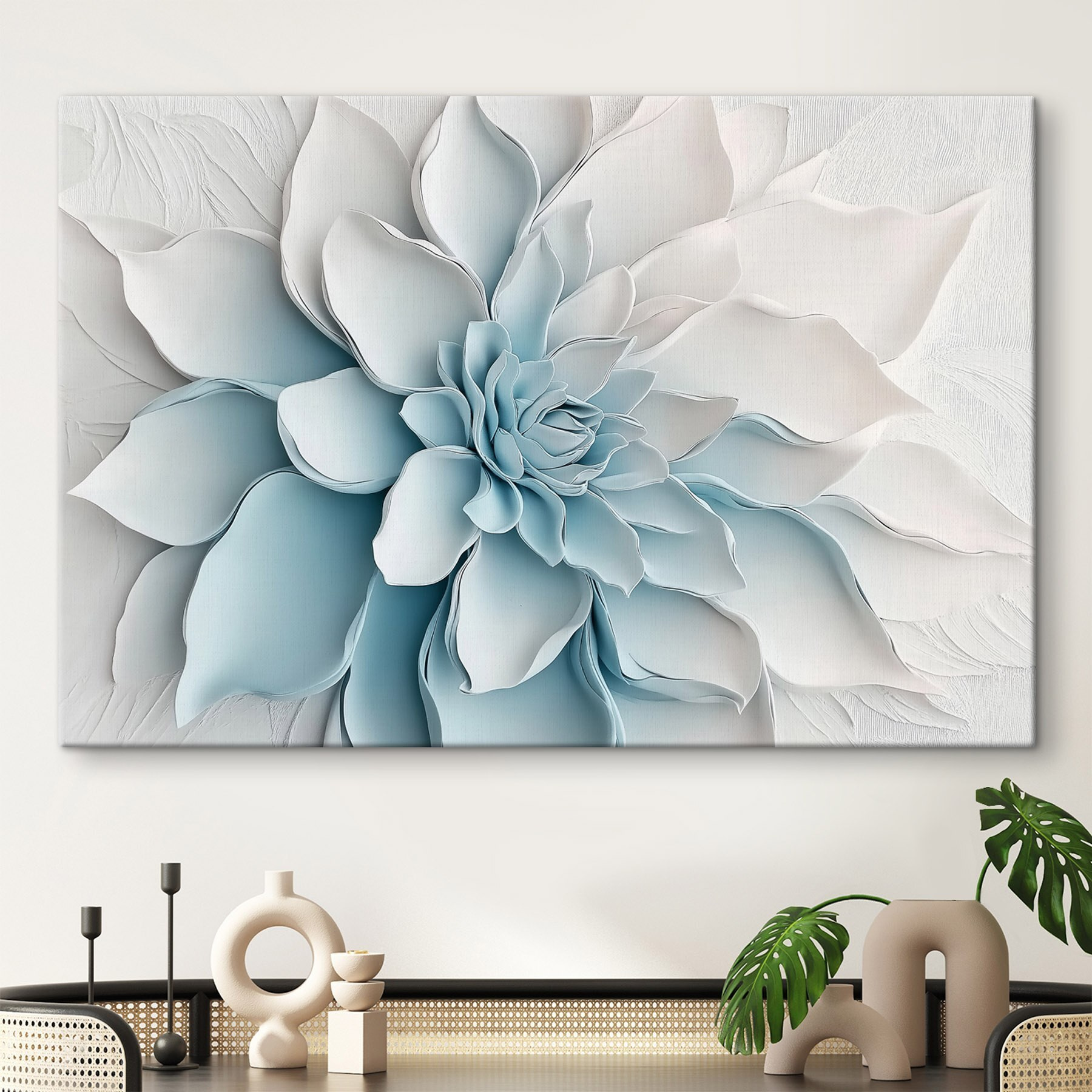 Aduceți o gură de aer proaspăt în orice spațiu cu această impresionantă imprimare pe pânză, “Tablouri White Flower Made of Paper”. Este ca o șoaptă a naturii capturată pe perete, invitând soarele și seninătatea direct în casa ta. Nuanțele blânde de alb și albastru creează un vibe pașnic care poate transforma chiar și cea mai banală cameră într-un refugiu confortabil. Imaginați-vă sorbindu-vă cafeaua de dimineață cu această frumusețe privindu-vă – acesta este genul de dispoziție matinală pe care o merită toată lumea! Straturile delicate ale designului evocă sentimente de calm, amintindu-vă să o luați ușor și să vă bucurați de plăcerile simple ale vieții. Fie că este expus într-o cameră de zi sau într-un colț liniștit, va fi cu siguranță un starter de conversație, făcând oaspeții să se oprească în loc. Această pânză nu este doar artă; este o experiență care așteaptă să se întâmple!