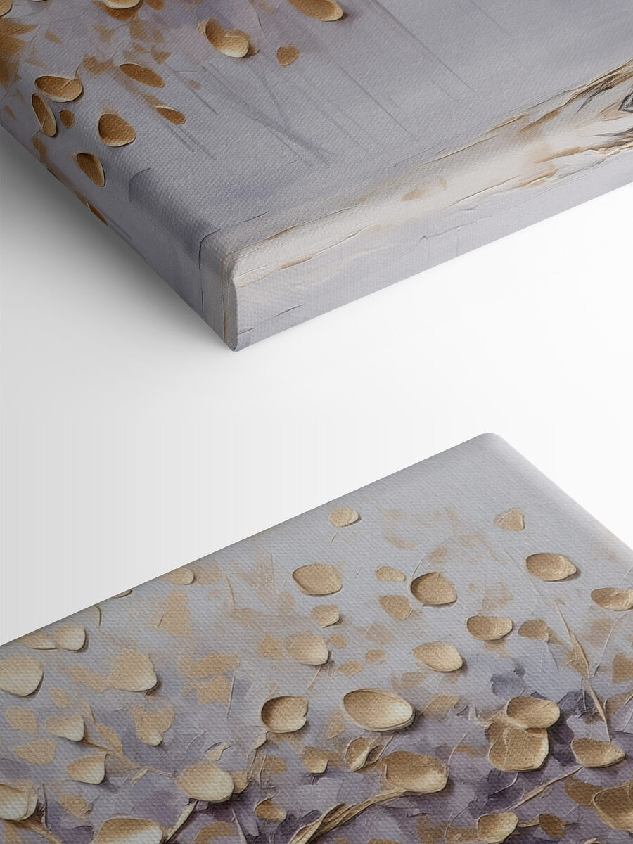 Imaginați-vă că pășiți într-o lume senină cu această imprimare pe pânză care prezintă un copac grațios, cu ramurile sale împodobite cu frunze minunate care par să danseze în briză. Culorile blânde evocă o vibrație pașnică care înalță instantaneu orice spațiu. Imaginați-vă-o deasupra unei canapele confortabile sau decorând un colț de lectură liniștit, invitându-vă să vă opriți și să reflectați.