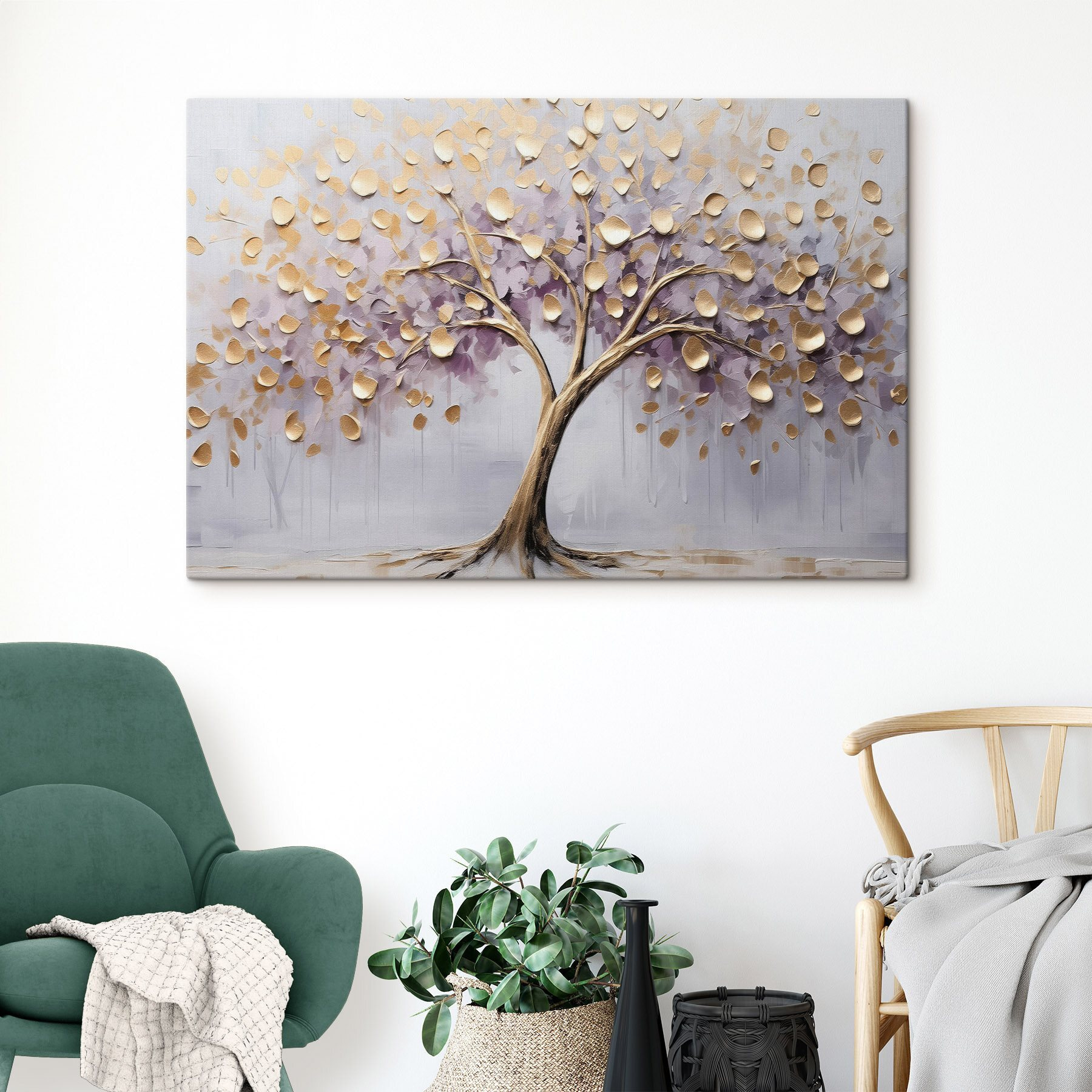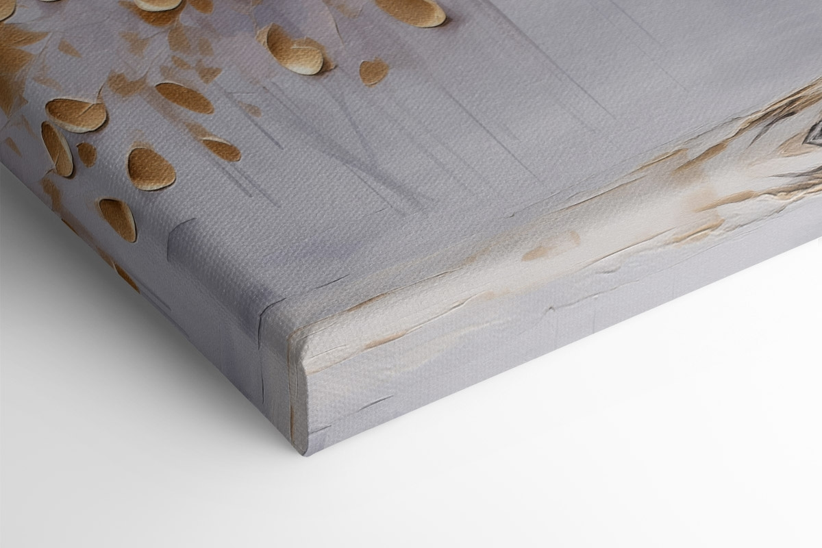 Imaginați-vă că pășiți într-o lume senină cu această imprimare pe pânză care prezintă un copac grațios, cu ramurile sale împodobite cu frunze minunate care par să danseze în briză. Culorile blânde evocă o vibrație pașnică care înalță instantaneu orice spațiu. Imaginați-vă-o deasupra unei canapele confortabile sau decorând un colț de lectură liniștit, invitându-vă să vă opriți și să reflectați.