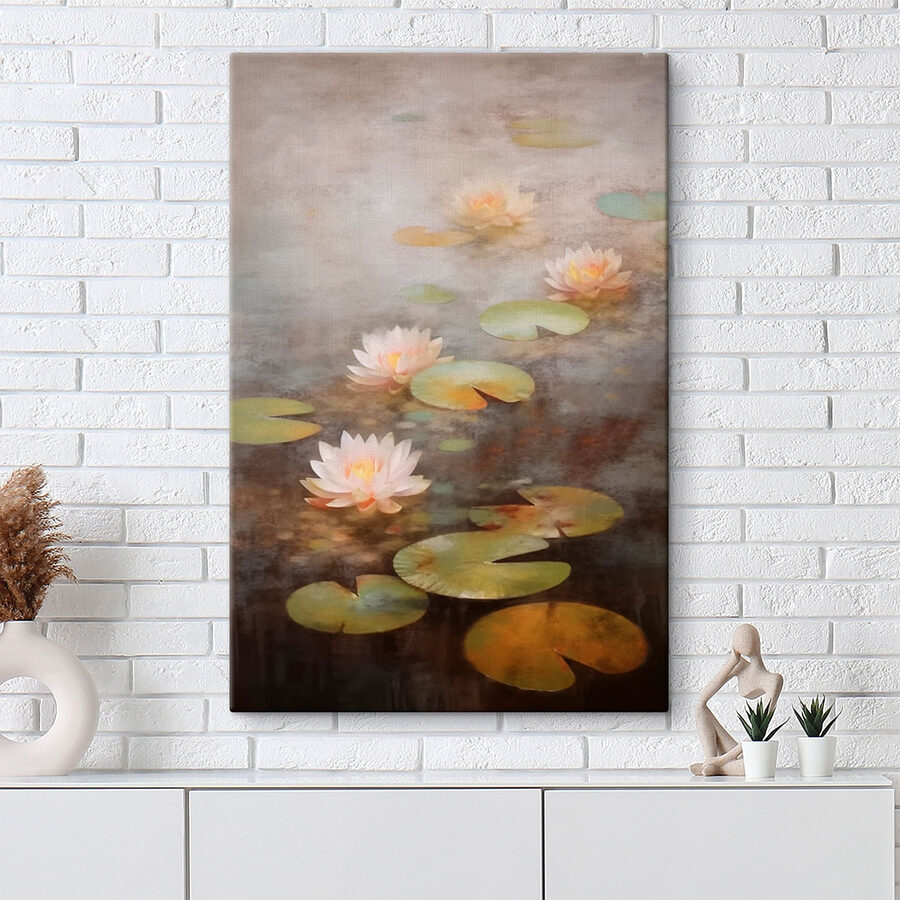 Descoperiți o evadare senină cu “Tablouri Water Lily Flowers and Lily Pads”. Această piesă încântătoare aduce o atingere a liniștii naturii chiar în casa dvs. Imaginați-vă că stați în colțul dvs. confortabil preferat, cu o ceașcă de ceai în mână, și vă pierdeți în albastrul de vis și pastelurile moi ale acestei lucrări de artă. Fiecare crin înflorit șoptește vibrații calme, perfecte pentru a spori o atmosferă liniștită. Fie că este agățat într-un living sau într-un dormitor, atrage privirile fără efort și stârnește conversații. Este ca și cum ai avea o bucățică dintr-un iaz senin chiar pe perete, amintindu-le tuturor că frumusețea înflorește adesea în cele mai liniștite locuri.