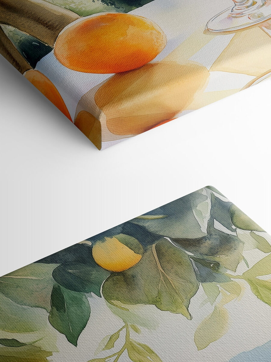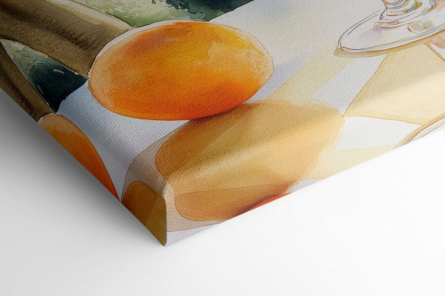 Transformați orice perete cu această pictură vibrantă pe pânză, „Pahar cu gheață și portocale”. Imaginați-vă cum vă înveselește bucătăria sau sufrageria, invitând la brunch-uri leneșe și după-amieze însorite. Portocalele intense și gheața răcoroasă evocă o băutură răcoritoare într-o zi caldă – cine nu-și dorește asta? E ca o mini-vacanță de fiecare dată când o priviți. În plus, tușele delicate de acuarelă conferă un farmec jucăuș care îi face pe oameni să zâmbească. Perfectă atât pentru gurmanzi, cât și pentru iubitorii de natură, este un subiect de conversație care îi va face pe toți să se simtă ca acasă. Noroc pentru decorul minunat!