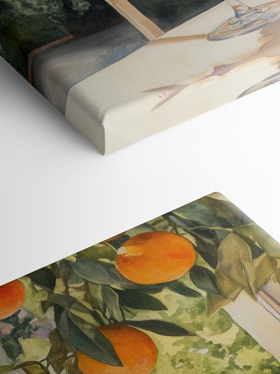 Înveseliți orice cameră cu această încântătoare imprimare pe pânză, „Pahar de suc de portocale cu gheață și portocale de la fereastră”. Imaginați-vă: o după-amiază caldă, razele soarelui pătrundând în cameră și mirosul dulce al portocalelor plutind în aer. Paharul răcoritor, perfect răcit, vă îmbie să luați o înghițitură. Este ca o mini-vacanță în locul tău preferat însorit, fără crema de protecție solară. Ideală pentru bucătării sau sufragerii, această piesă adaugă un strop de culoare și un plus de savoare pereților. Invită-ți prietenii și lasă-i să se bucure de aceste vibrații pozitive – s-ar putea chiar să te simți ca și cum te-ai relaxa lângă piscină! Crede-ne, această operă de artă aduce o notă veselă oricărui spațiu.