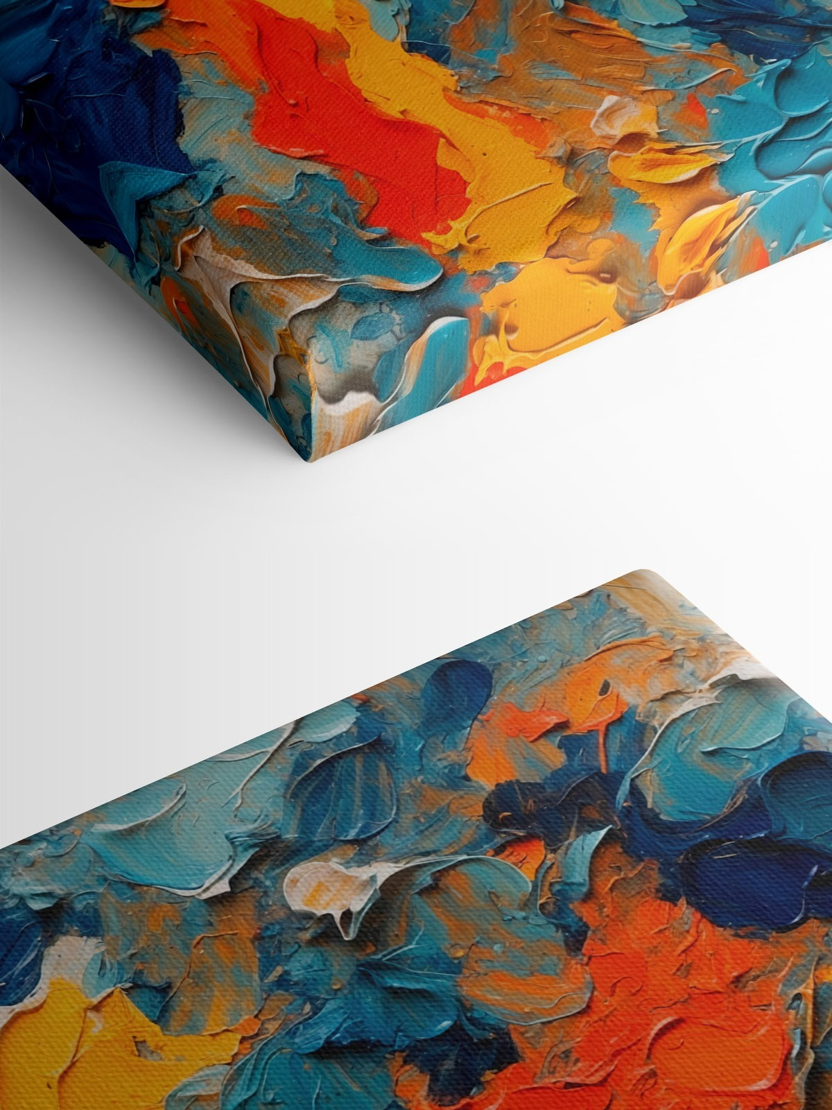 Scufundați-vă într-o mare de culoare cu această imprimare abstractă vibrantă pe pânză! Este ca o conversație plină de viață pe peretele dvs. – fiecare vârtej și strop vă invită să pășiți într-o lume a imaginației. Imaginați-vă-o deasupra canapelei, transformând spațiul din obișnuit în extraordinar. Prietenii se vor opri la jumătatea propoziției, cu ochii măriți, pe măsură ce se vor pierde în haosul de nuanțe. Amestecul de albastru, portocaliu și galben va aduce căldură și energie în orice cameră, devenind un fundal perfect pentru nopțile confortabile sau pentru întâlnirile pline de viață. Cine ar fi crezut că o pânză poate stârni atât de multă bucurie?