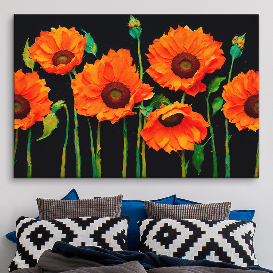 Înveseliți orice spațiu cu această pânză plină de viață cu flori portocalii care sar practic de pe perete. Florile îndrăznețe, ridicate pe un fundal adânc, au un mod de a face o cameră să pară mai primitoare – și puțin mai veselă. Imaginați-vă sorbindu-vă cafeaua de dimineață în timp ce aceste frumuseți vă întâmpină; este ca și cum ați avea o grădină veselă chiar în interior. Ele au acea energie vibrantă care te atrage, stârnind zâmbete cu fiecare privire. Perfecte pentru o cameră de zi sau chiar pentru un colț confortabil, ele strigă personalitate fără să scoată un cuvânt. Cine are nevoie de o zi însorită când pereții tăi pot aduce razele soarelui?