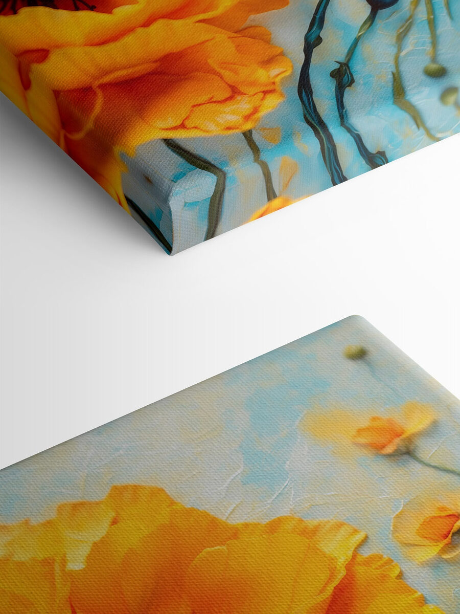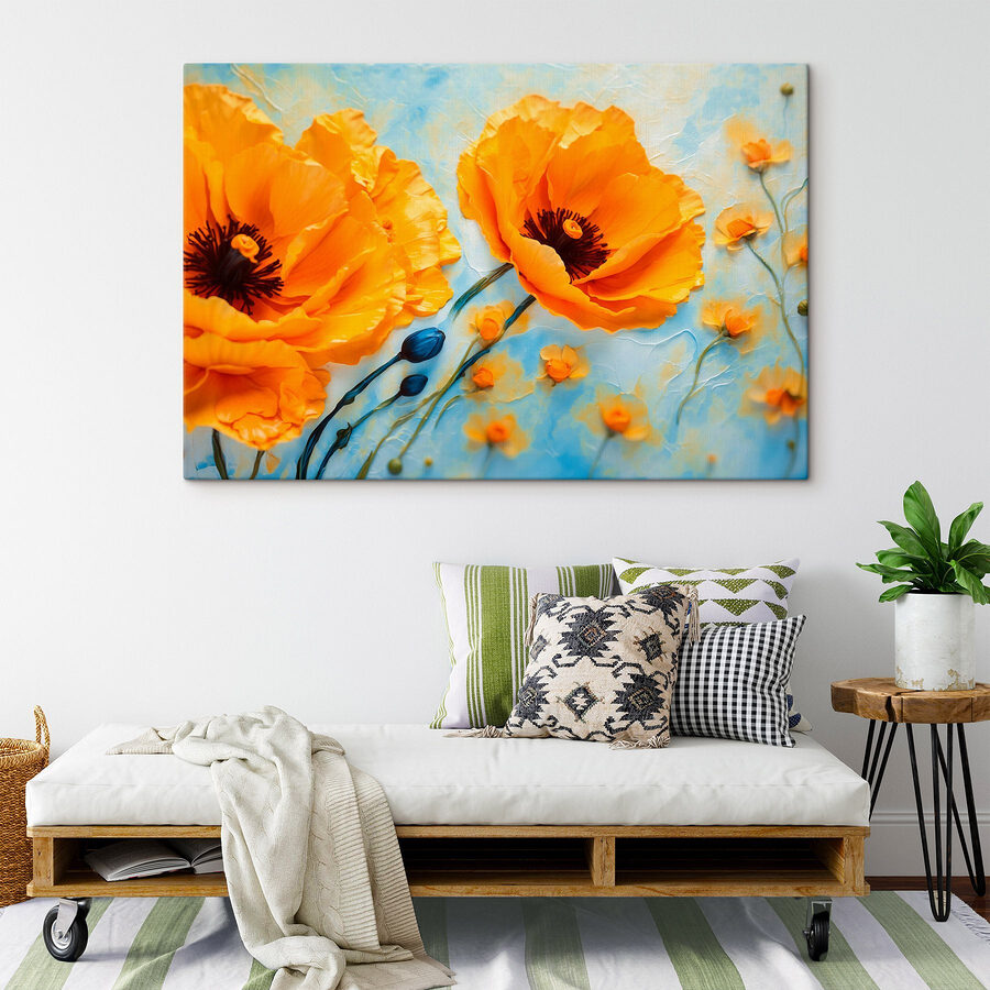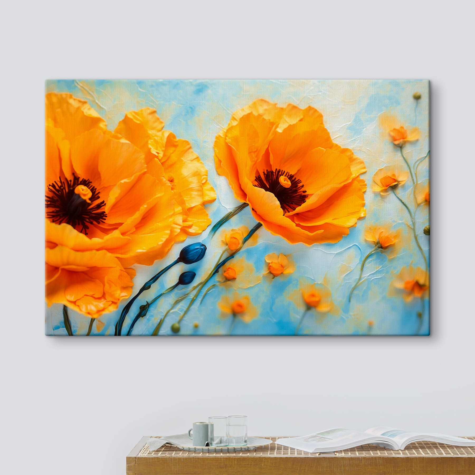 Înveseliți orice cameră cu această imprimare uimitoare pe pânză a florilor frumoase care izbucnesc pe un fundal vesel. Imaginați-vă că intrați într-un spațiu în care galbenul vibrant și albastrul liniștitor se unesc, aducând un strop de natură în interior. Este ca și cum ai avea o zi însorită capturată pe perete, gata să ridice spiritele și să stârnească bucurie. Perfectă pentru acele colțuri confortabile sau pentru acel perete gol care imploră puțină dragoste, această piesă invită la căldură și viață. Fiecare privire se simte ca o mică evadare într-o grădină înflorită, fiind greu să nu zâmbești. De ce să așteptați? Aduceți exteriorul înăuntru și lăsați vibrațiile bune să curgă!