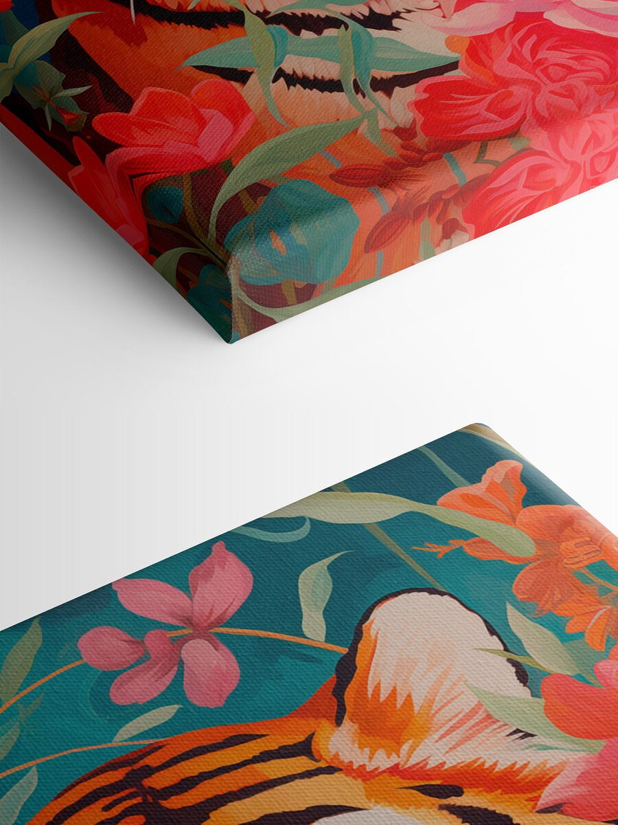 Pregătește-te să-ți transformi spațiul cu această uimitoare imprimare pe pânză, care înfățișează un tigru feroce înconjurat de flori vibrante. Este ca și cum ai avea o bucată din sălbăticie chiar în sufrageria ta. Culorile îndrăznețe ies în evidență ca cocktailul tău preferat de vară, făcându-te să nu-ți poți lua ochii de la ele. Imaginați-vă că vă cuibăriți cu o carte și ridicați privirea pentru a vedea această creatură maiestuoasă care veghează – ce subiect de conversație! Fie că decorează un colț confortabil sau adaugă un plus de stil unui perete galerie, această imprimare surprinde combinația perfectă între forță și frumusețe. În plus, de fiecare dată când treceți pe lângă ea, vă veți simți puțin mai aventuros. Cine nu și-ar dori asta?