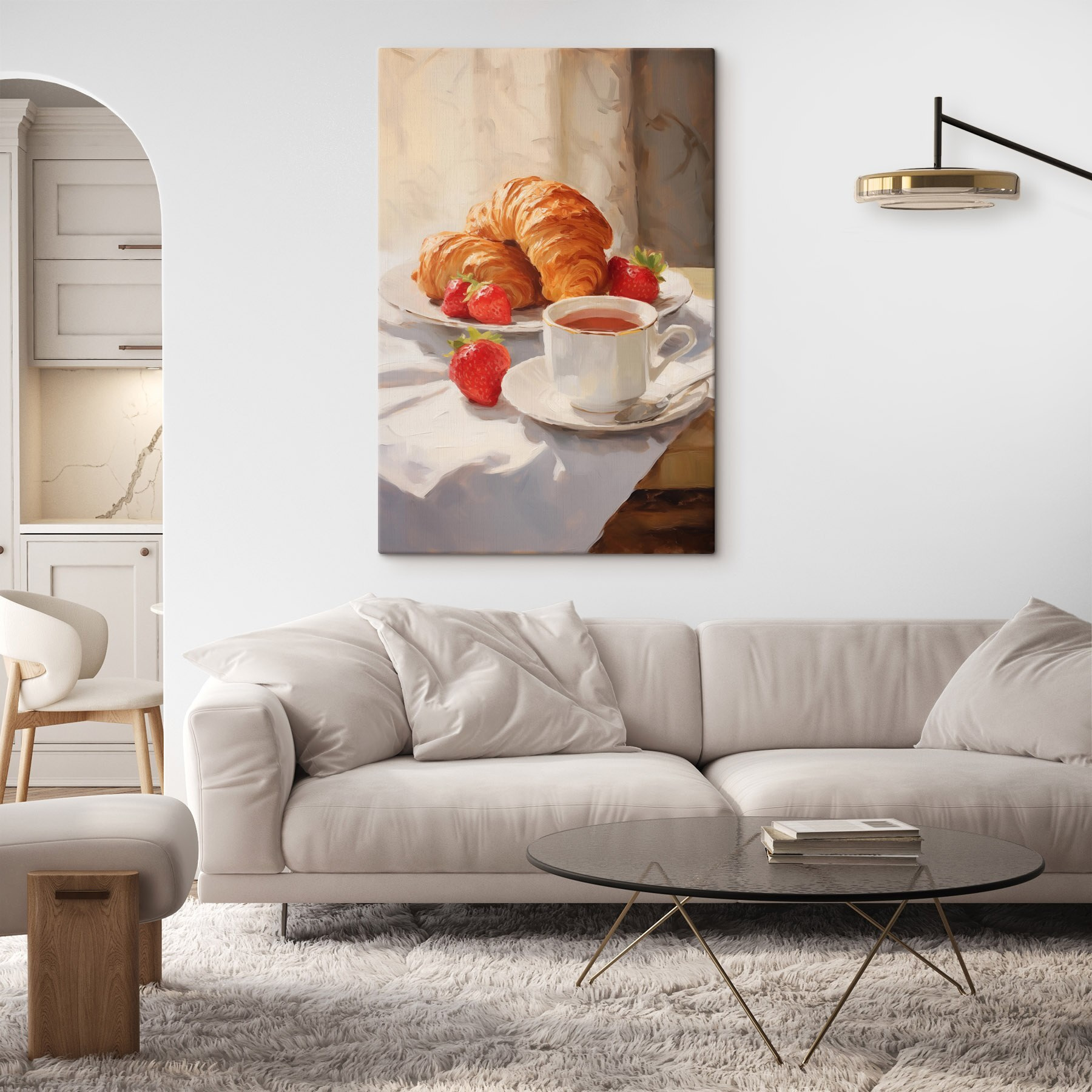 Brighten up your space with this delightful canvas print, showcasing croissants and strawberries like they’re posing for the cover of a gourmet magazine. Picture this: morning light streaming in, the aroma of fresh coffee wafting through the air, and a warm croissant just waiting to be devoured. It’s that little slice of heaven anyone could use. Hang it in the kitchen or dining area, and it’ll bring a sweet, cozy vibe, making every breakfast feel like a special occasion. Who doesn’t love a little reminder of life’s simple pleasures? Trust us, this artwork’s got charm, flavor, and just the right amount of yumminess!