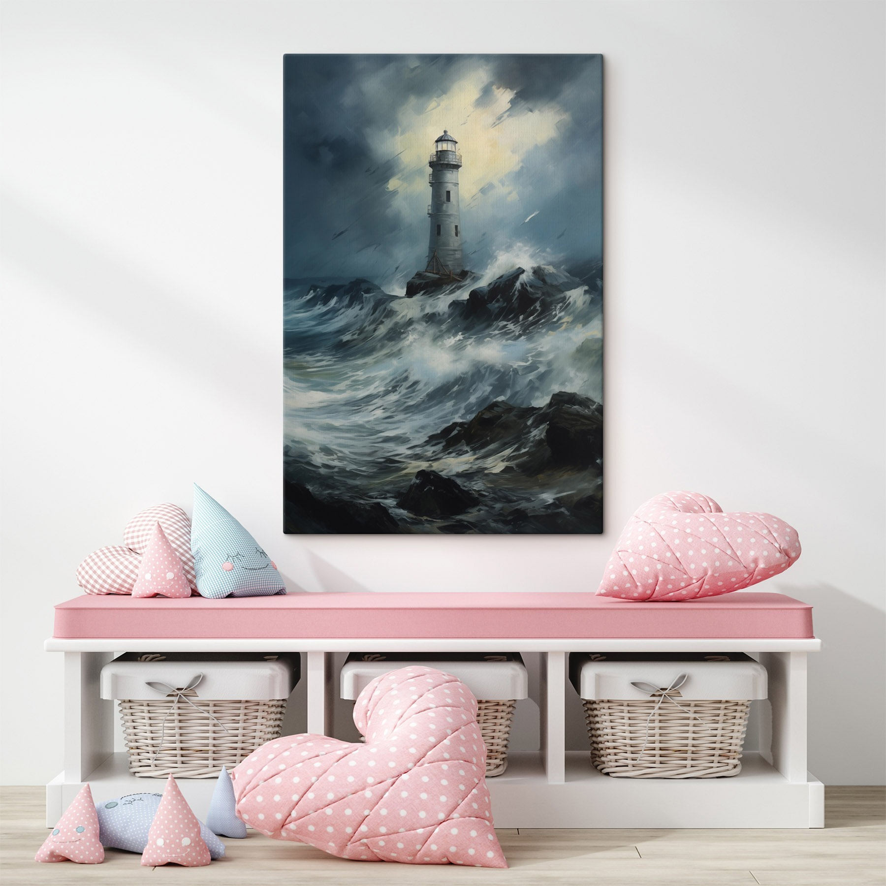 Imaginați-vă acest far uimitor, care se înalță curajos împotriva valurilor înspumate, ghidând navele rătăcite spre casă. Este mai mult decât o simplă operă de artă; surprinde un sentiment de aventură, mister și o picătură din sălbăticia oceanului. Așezarea acestei pânze pe perete este ca și cum ați invita o bucată din mare în spațiul vostru. Prietenii s-ar putea opri și ar spune: „Uau, unde ai găsit asta?” Iar tu poți zâmbi pur și simplu, știind că ai adăugat un strop de magie costieră decorului tău. Perfect pentru iubitorii de plajă sau pentru oricine are nevoie de un memento al frumuseții naturii. Cine nu s-ar simți inspirat de cerul furtunos și de lumina hotărâtă a farului? Este o aventură zilnică chiar acasă!