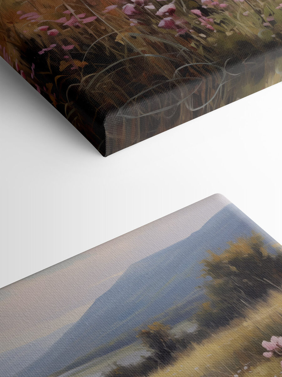 Imaginați-vă: o briză ușoară, parfumul dulce al florilor și priveliștea lacului care vă face să uitați de griji. Această „Pânză imprimată Câmp de flori lângă un lac” surprinde acel moment perfect. Cu flori roz încântătoare care dansează în prim-plan și apele liniștite care reflectă nuanțe delicate în fundal, este ca o mini-evadare chiar pe peretele dvs. Imaginați-vă că vă primiți prietenii – această piesă va stârni conversații despre visuri cu ochii deschiși și plimbări în natură. O notă de seninătate alături de o explozie de culoare, este genul de artă care vă aduce un zâmbet de fiecare dată când o priviți. Perfectă pentru a înveseli un colț confortabil sau pentru a da un plus de personalitate livingului dvs. Cine nu și-ar dori o mică bucățică din natură în interiorul casei?