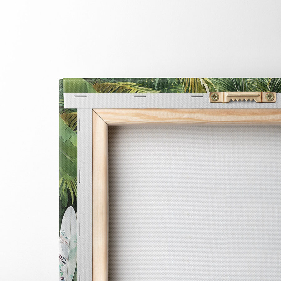 Pășiți într-un paradis însuflețit cu această imprimare pe pânză care surprinde o scenă senină de piscină. Imaginați-vă aceste șezlonguri confortabile, așteptând doar ca cineva să se relaxeze, să bea o băutură rece și să se bucure de soare. Plăcile de surf stau în apropiere, pregătite pentru aventuri spontane. Nu este doar o scenă; este o vibrație. Vegetația luxuriantă dă un strop de viață, învăluind spațiul în îmbrățișarea naturii. Imaginați-vă cum această operă de artă poate face ca orice cameră să se simtă ca un refugiu de vacanță, invitând la relaxare și la visări însorite. Perfect pentru a aduce un strop de bucurie și o atingere de aer liber în interior!