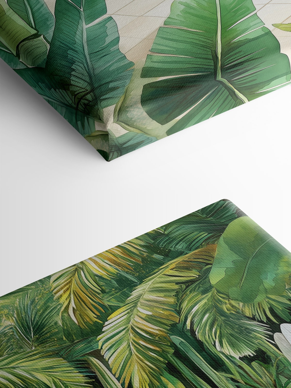 Pășiți într-un paradis însuflețit cu această imprimare pe pânză care surprinde o scenă senină de piscină. Imaginați-vă aceste șezlonguri confortabile, așteptând doar ca cineva să se relaxeze, să bea o băutură rece și să se bucure de soare. Plăcile de surf stau în apropiere, pregătite pentru aventuri spontane. Nu este doar o scenă; este o vibrație. Vegetația luxuriantă dă un strop de viață, învăluind spațiul în îmbrățișarea naturii. Imaginați-vă cum această operă de artă poate face ca orice cameră să se simtă ca un refugiu de vacanță, invitând la relaxare și la visări însorite. Perfect pentru a aduce un strop de bucurie și o atingere de aer liber în interior!