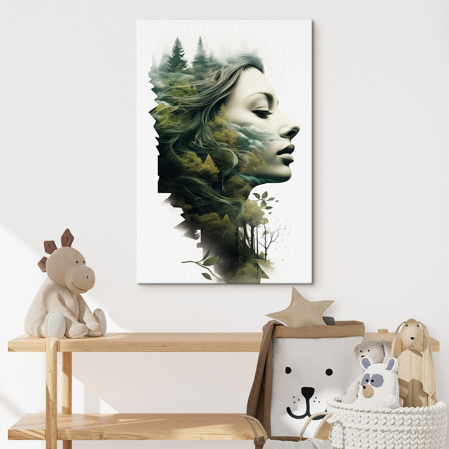 Pășește într-o evadare de vis cu această imprimare încântătoare pe pânză cu chipul unei femei împletit cu copaci și nori. Este ca și cum natura i-a șoptit un secret, iar ea nu s-a putut abține să nu îl împărtășească. Perfectă pentru oricine iubește un pic de fantezie în spațiul său, această operă de artă captează liniștea, stârnind în același timp curiozitatea. Imaginați-vă-o agățată într-un colț de lectură confortabil – lumina moale pătrunde înăuntru, o ceașcă caldă în mână. Se simte ca și cum natura ar fi chiar acolo cu tine, invitând la momente de reflecție și visare cu ochii deschiși. Vorbim despre un starter de conversație!