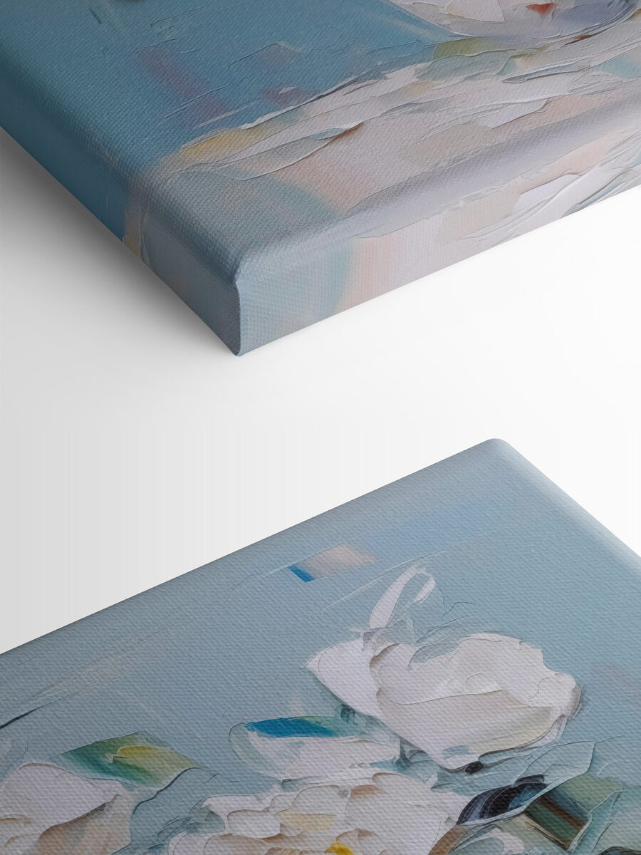Înveseliți orice spațiu cu acest minunat print pe pânză cu flori într-o ceașcă. Imaginați-vă sorbind cafea în timp ce priviți această piesă veselă – este ca și cum ați avea o mică grădină chiar în casa dumneavoastră! Aceste flori par să prindă lumina exact așa, făcând orice cameră să se simtă confortabilă și primitoare. Perfectă pentru un colț de bucătărie sau o cameră de zi, aceasta adaugă o notă de căldură și fantezie. În plus, stârnește conversații – cine nu ar vrea să discute despre o astfel de expoziție minunată? Aduceți un pic de natură în casă; se simte ca o gură de aer proaspăt, fără grijile sezonului alergiilor!