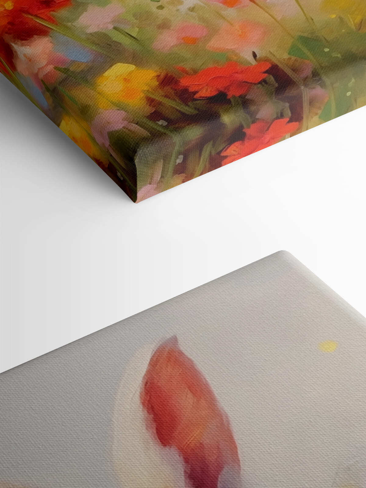 Descoperiți o fărâmă de fantezie cu această încântătoare imprimare pe pânză care prezintă un iepure alb curios care se joacă într-un câmp de flori vibrante. Imaginați-vă această piesă minunată atârnată pe perete, aducând o notă de natură în interior. Culorile vesele și vibrația jucăușă creează o stare de spirit instantanee, perfectă pentru a înveseli o cameră de zi sau pentru a adăuga farmec unui colțișor confortabil. Este ca și cum ai avea o bucățică dintr-un basm chiar la tine acasă. Cine nu ar zâmbi la chipul acela dulce care iese dintr-o mare de flori? Perfect pentru toți cei care cred că puțină magie poate fi găsită în viața de zi cu zi.
