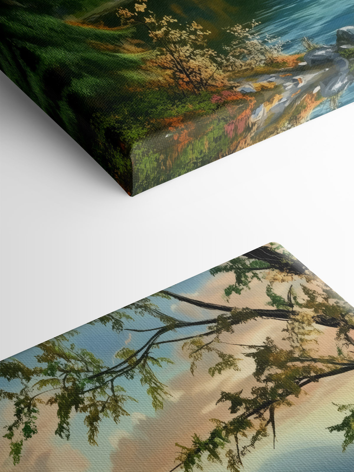 Imaginați-vă o seară confortabilă în care soarele se ascunde în spatele munților maiestuoși, pictând cerul în nuanțe calde. Această imprimare pe pânză a unei bărci plutind ușor pe un lac liniștit surprinde acea magie. Este ca și cum ai aduce o bucată din natură chiar în casa ta. Imaginați-vă-o agățată în camera de zi sau într-un colț liniștit – perfectă pentru a visa cu ochii deschiși sau a vă relaxa după o zi lungă.
