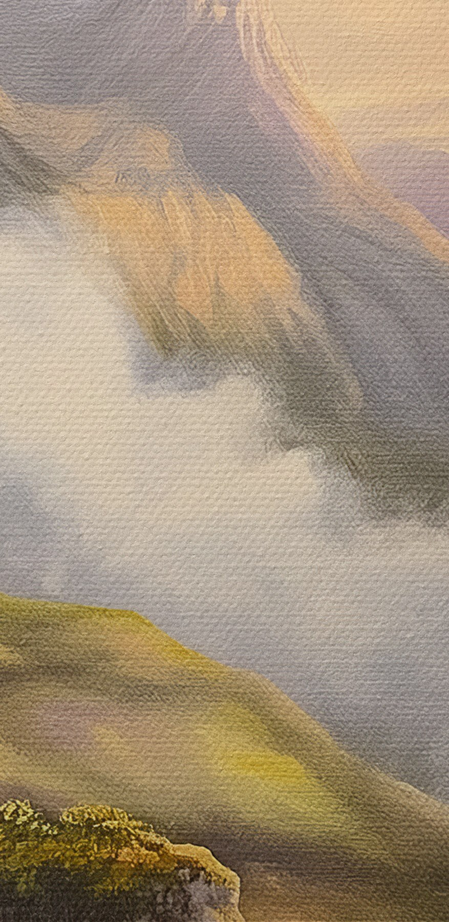 Aduceți frumusețea senină a naturii în spațiul dvs. cu această imprimare uimitoare pe pânză cu munți maiestuoși și nori pufoși. Imaginați-vă acest lucru: relaxați-vă într-un colț confortabil, cu o ceașcă caldă de ceai în mână, în timp ce priviți acești giganți blânzi care par să vă șoptească povești vechi. Este ca o mini evadare în aer liber, fără a fi nevoie de cizme de drumeție. Culorile blânde pot înveseli orice cameră, fiind un fundal perfect pentru momentele de reflecție sau pentru întâlnirile pline de viață. Această operă de artă nu este doar atârnată pe perete; ea adaugă o felie de pace vieții de zi cu zi. Perfectă pentru iubitorii de natură sau pentru oricine are nevoie pur și simplu de o gură de aer proaspăt acasă.