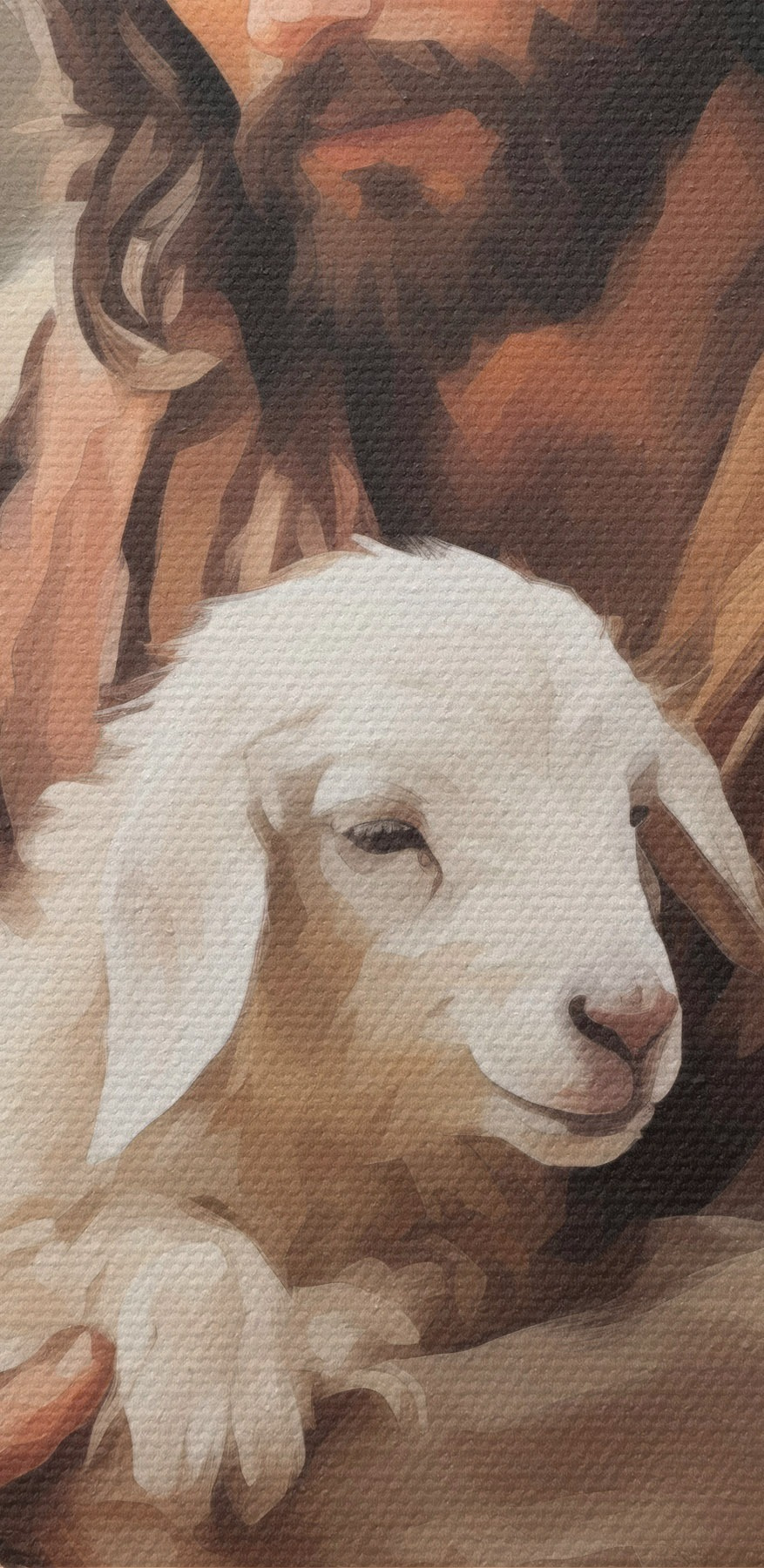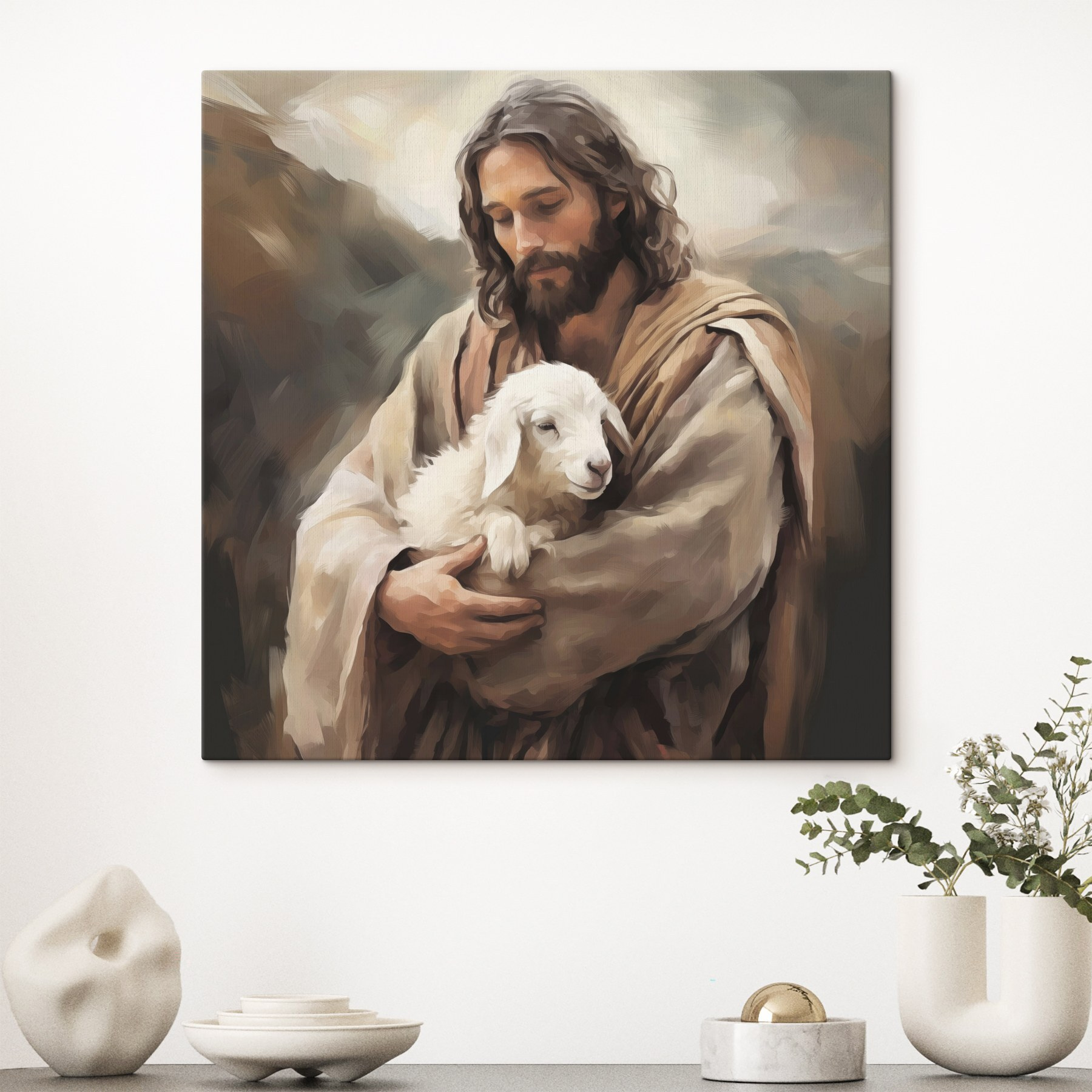 Această imprimare captivantă pe pânză a unui bărbat care mângâie un miel aduce o atmosferă caldă și liniștită în orice spațiu. Imaginați-vă-o atârnată pe perete, stârnind conversații sau pur și simplu oferind un moment de calm în mijlocul haosului. Expresiile blânde vă fac să vă simțiți ca și cum ați trage cu ochiul la un moment senin, în care iubirea și grija sunt în centrul atenției. Este perfect pentru colțuri confortabile sau locuri mai proeminente, invitând la un sentiment de liniște. Fie că sunteți un fan al artei semnificative sau doriți doar ceva unic, această piesă se potrivește perfect. Este ca și cum ai avea o îmbrățișare moale pe perete, amintindu-le tuturor că bunătatea contează.