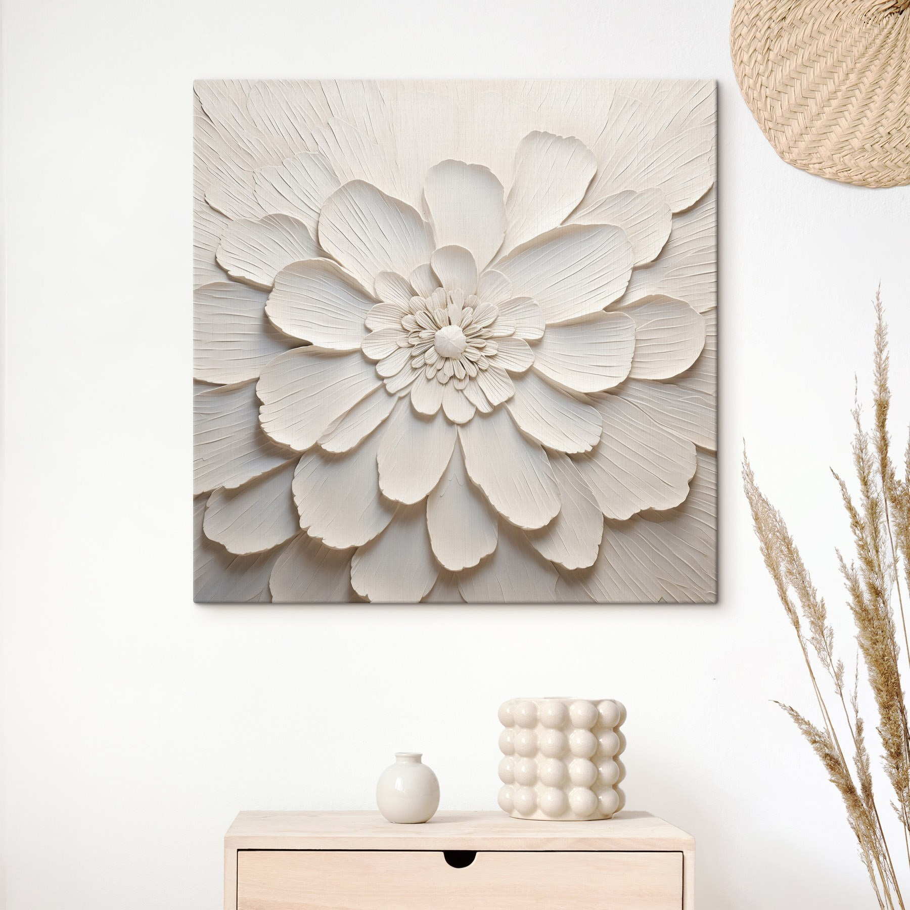 Transformați-vă spațiul cu această imprimare uimitoare pe pânză a unei flori albe, plină de petale care par să danseze în lumină. Este ca și cum ai avea o grădină proaspătă chiar în sufrageria ta, fără întreținere. Imaginează-ți că te relaxezi cu o carte și îți lași privirea să se îndrepte spre această frumusețe – o atmosferă atât de liniștitoare. Tonurile blânde invită la calm, ceea ce o face perfectă pentru un colț confortabil sau un hol luminos. Este ca o amintire blândă a grației naturii, indiferent de anotimp. Împarte-l cu prietenii sau savurează-l singur; cu siguranță va stârni un zâmbet. O mică atingere de eleganță, și cine nu are nevoie de asta?